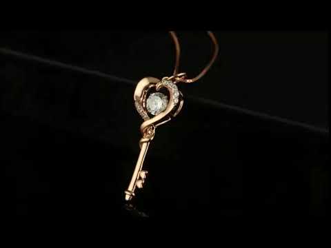 💎 Elegant Dancing CZ Heart Key Pendant Necklace