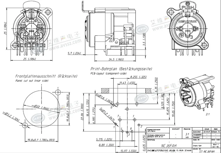 | Contact plating | gal 0.2 µm AuCo (XLR), gal 0.2 µm Ag (Jack RS), Palladium, 0.1 µm Pd over 3 µm NiP |