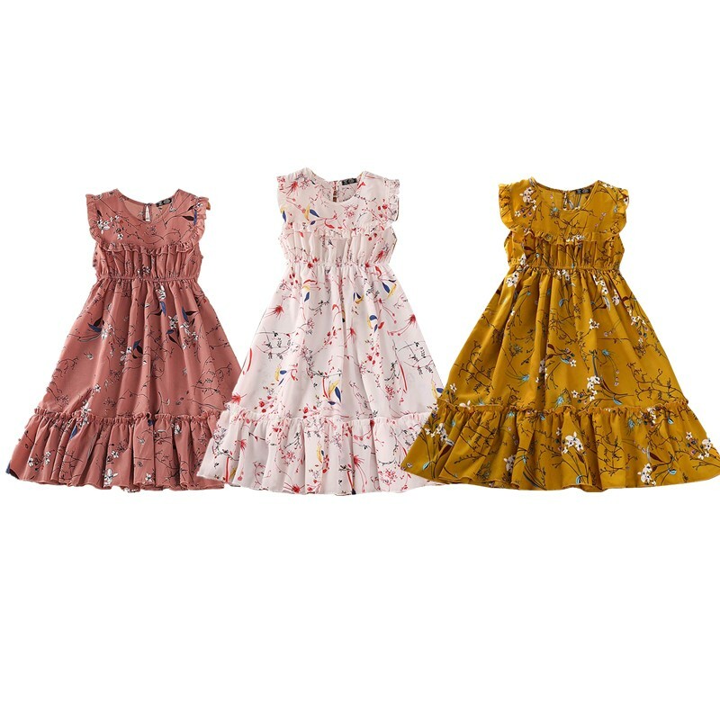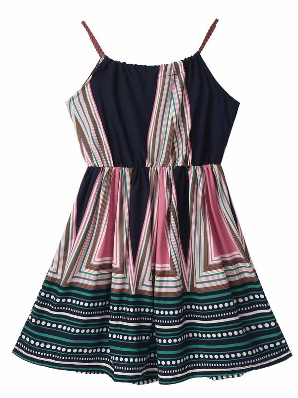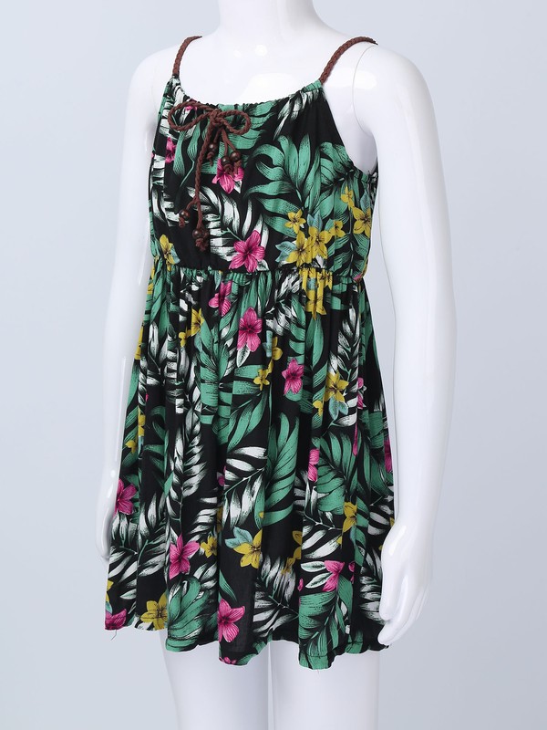 Summer Girls Casual Beach Dress Suspender Dress Pleated Waist Above Knee Length Princess Dress.