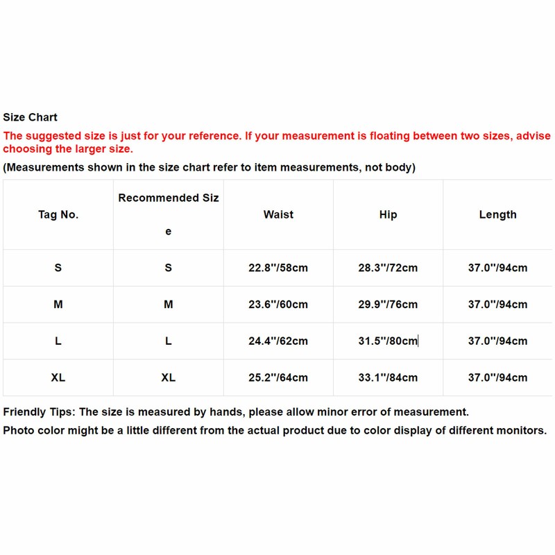 Size Chart:The suggested size is just for your reference. If your measurement is floating between two sizes, advise choosing the larger size. (Measurements shown in the size chart refer to item measurements, not body)