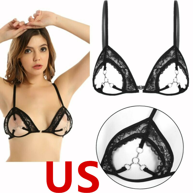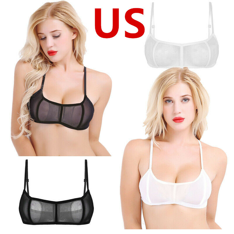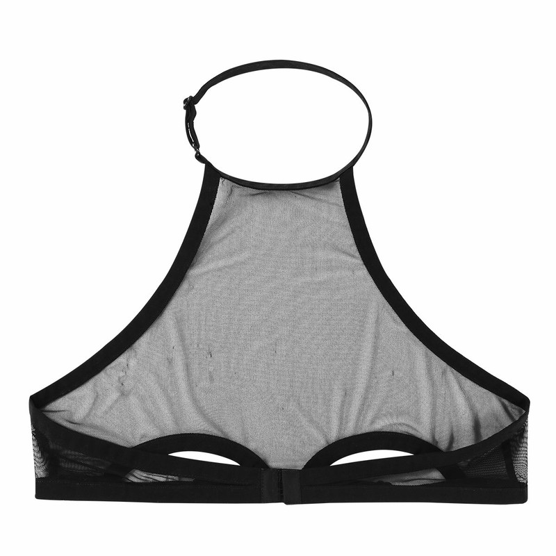 Women’s mesh see through sheer bra top, wire-free unlined.