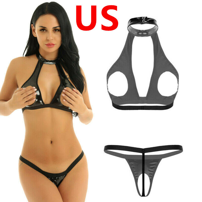 Women’s wet look patent leather underwired bra top lingerie, attractive and charming.