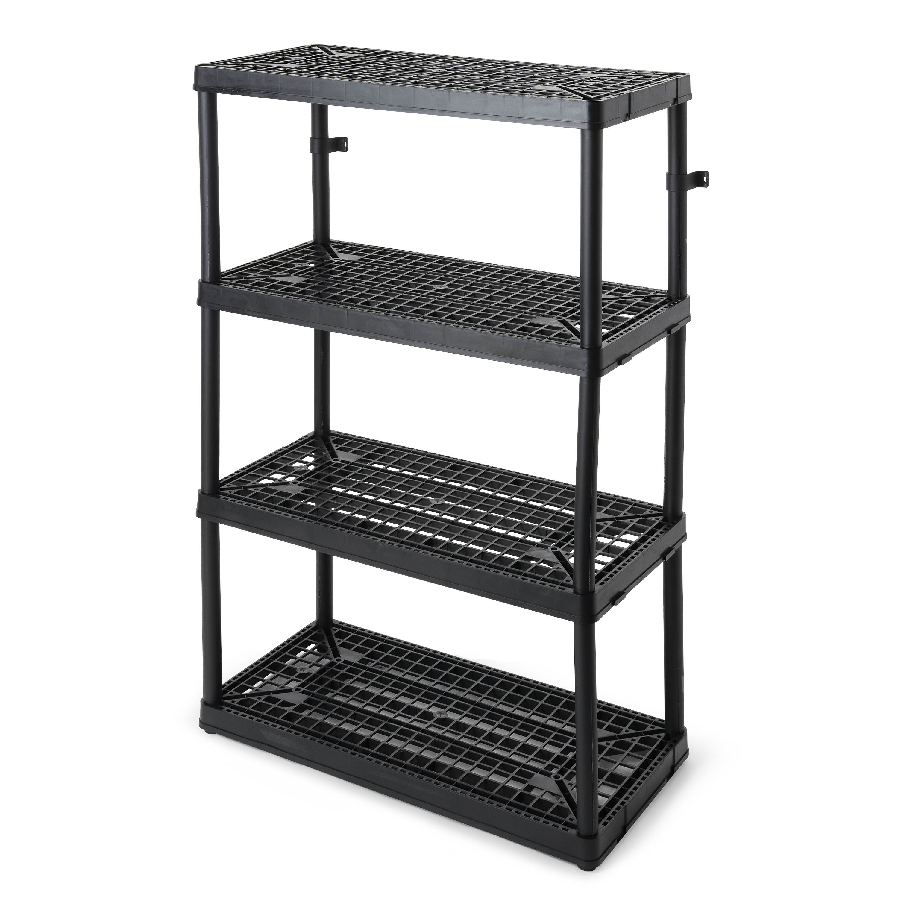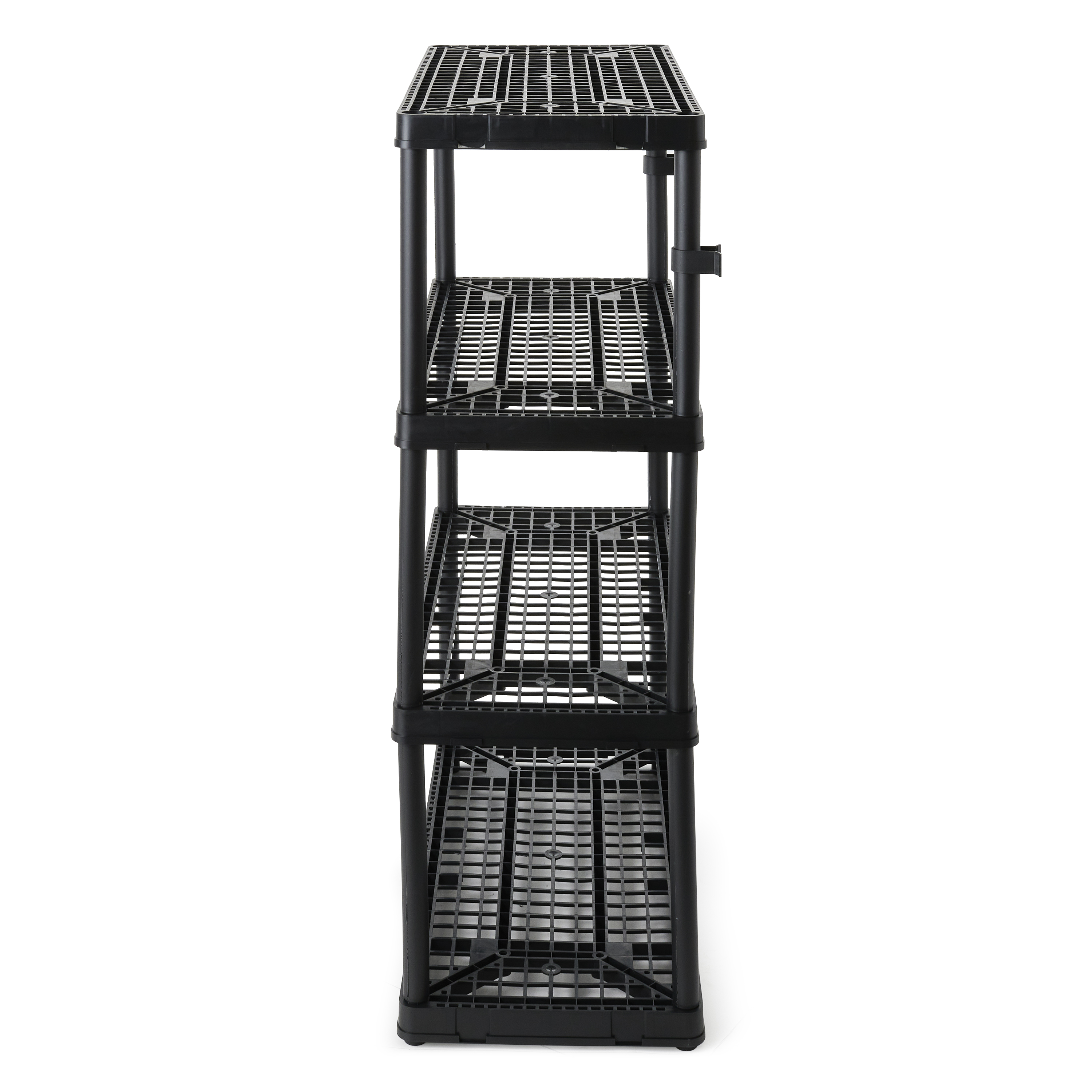 When you're short on closet space or need to organize the pantry, count on this 4-Tier Fixed Height Storage Shelving from Gracious Living to help you transform clutter into clean. These plastic storage shelves function as garage storage, a shelf organizer to display shoes, or even as a bookcase, allowing you to easily organize and store various items.