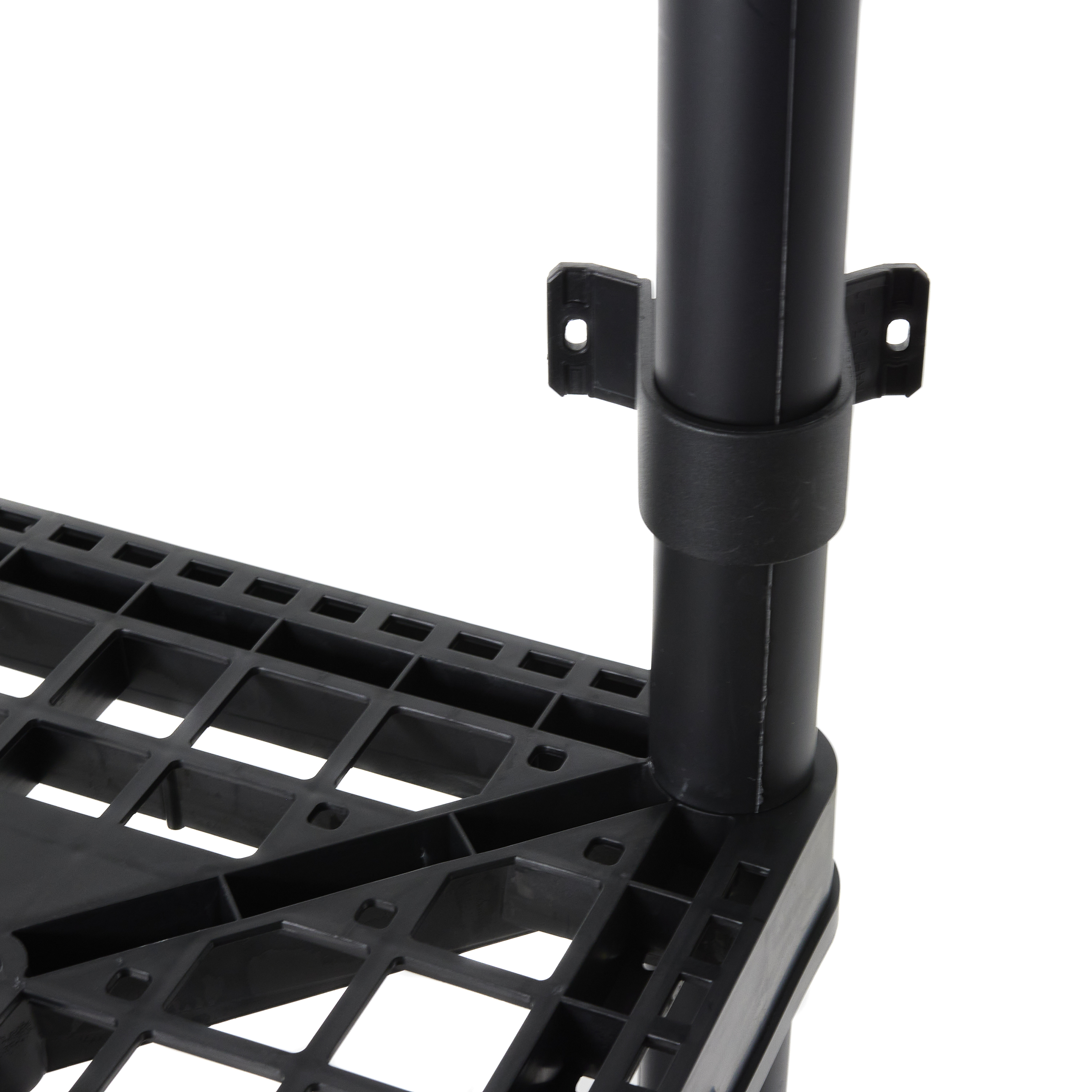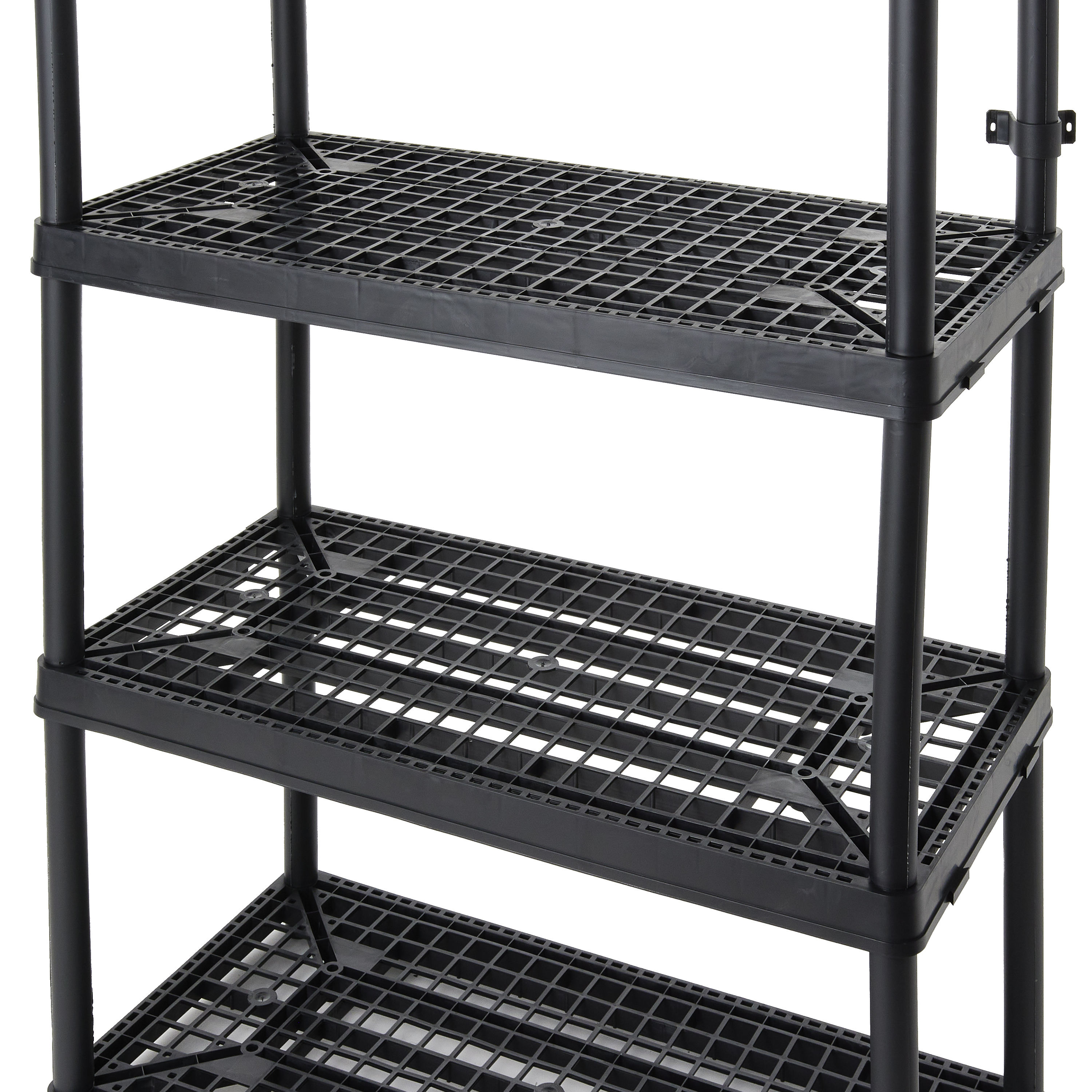 This bathroom storage shelf showcases timeless elegance for functional spaces with its lightweight, plastic construction and sleek color. Easily snap together for a simple installation process, and interconnect with additional units side-by-side for more storage space. Each ventilated shelf supports up to 150 pounds, providing a 600-pound unit capacity overall. Make sure that you distribute the weight evenly on the shelves for optimal, lasting use. With the 4 fixed shelves, you can organize laundry supplies, seasonal clothing items, home decor, toys, crafts, or tools. The closet storage shelf measures 18 inches long, 36 inches wide, and 54.5 inches tall offering a storage solution for any room. For added versatility, you can use the included brackets to mount the plastic shelves to the wall.