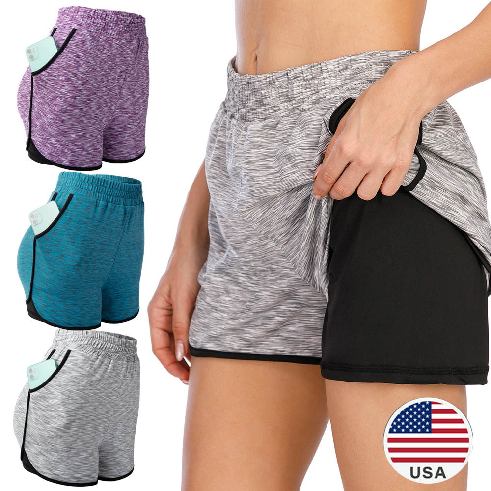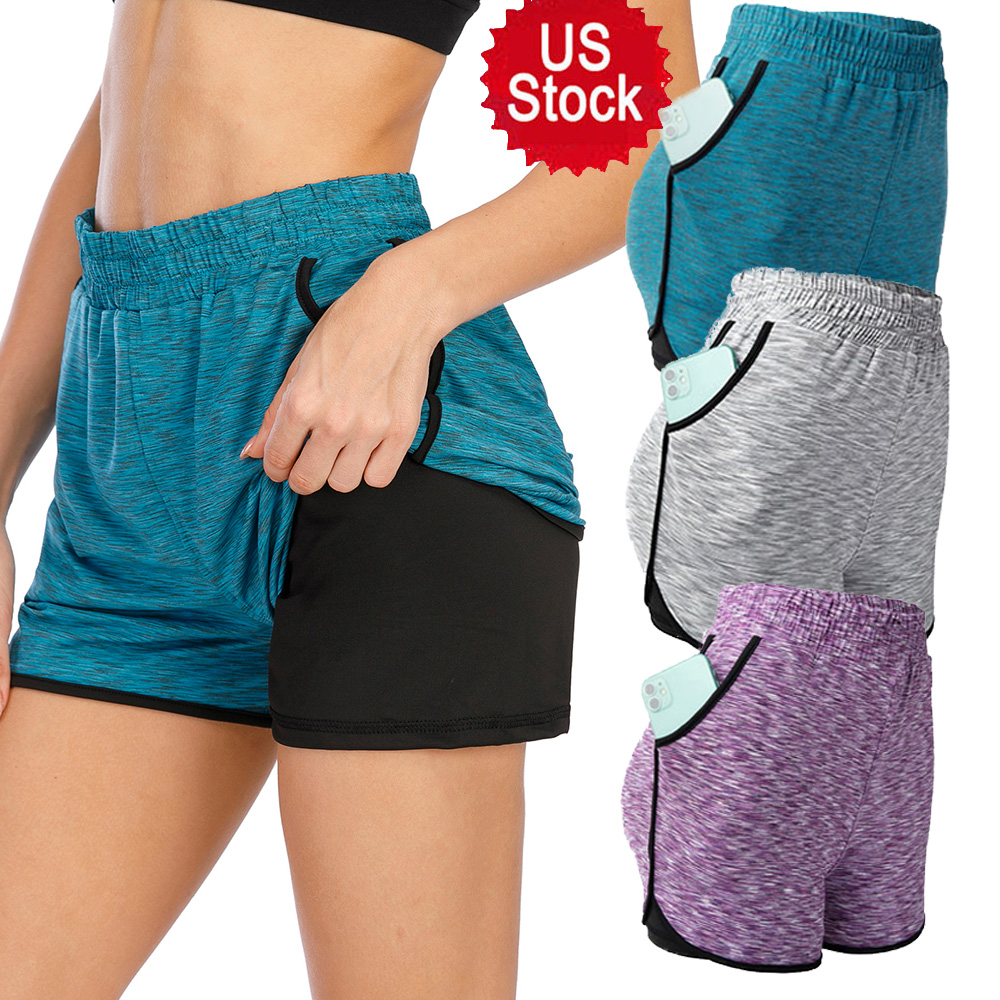 Women's 2-in-1 Casual Yoga Shorts Running Work Out Sports Slim Fit Shorts New US