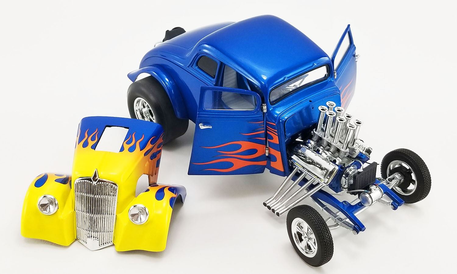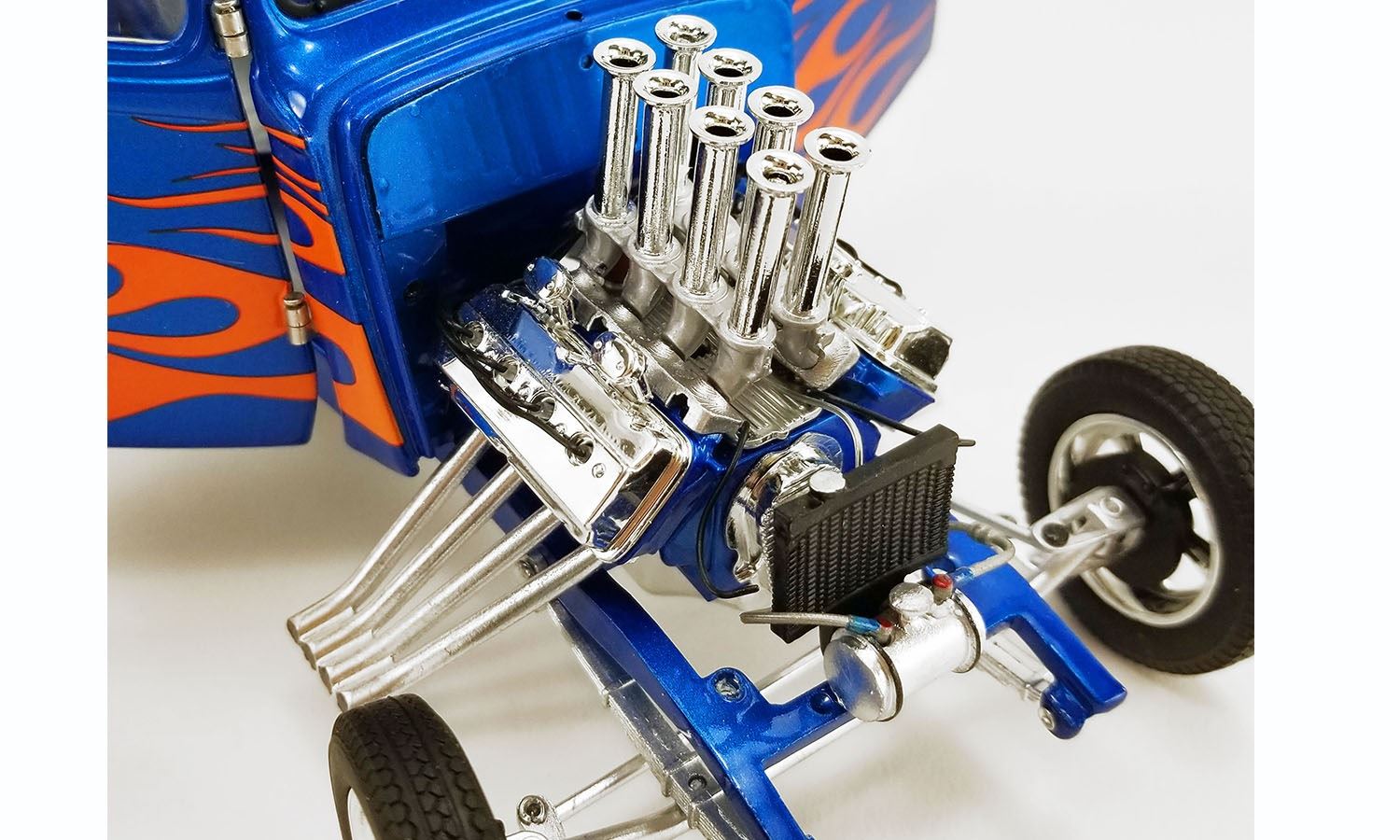 The Acme 1:18 Scale 1933 Gasser - Blue Flame Features A Killer Blue Paint Job With Flames.