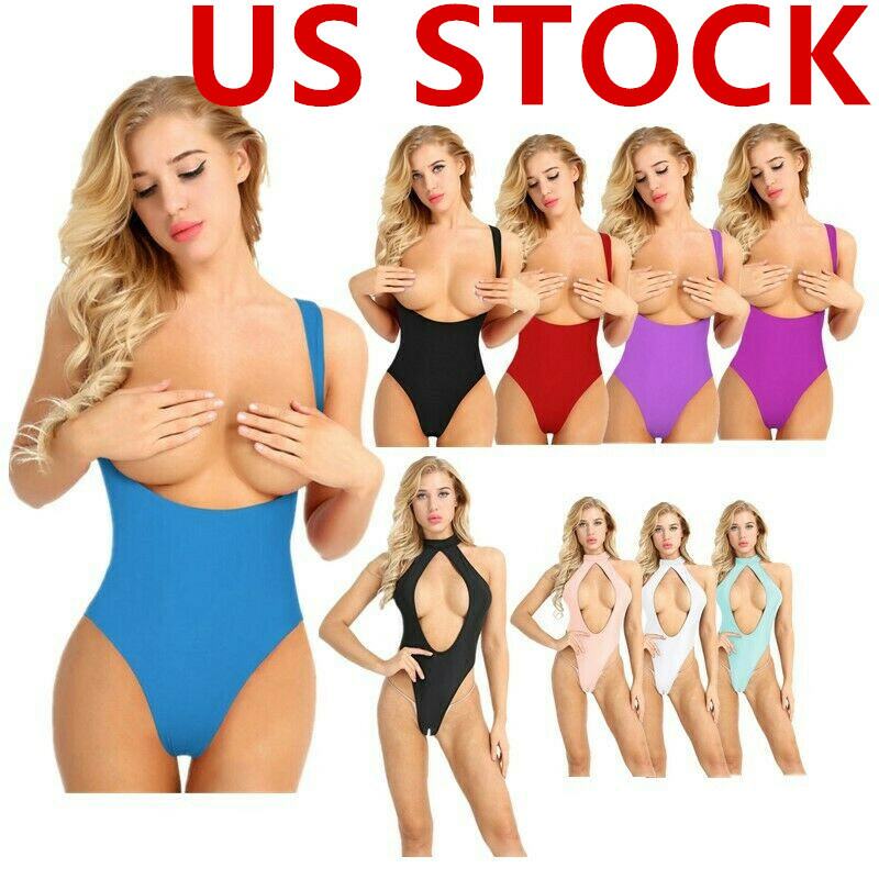 - Sexy Women’s One-piece High Cut Thong Leotard, sleeveless.
