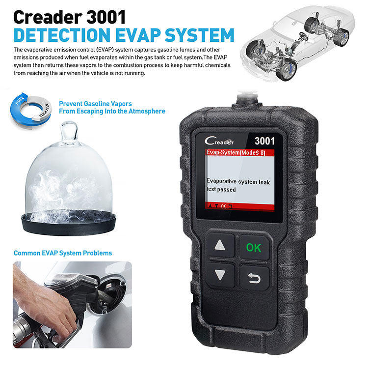 [ View Freeze Frame/Live Data Stream/ O2 Sensor/ Evap System test/ On-Board Monitor Test] : Launch 3001 is one useful and economic OBD2 FULL FUNCTION automotive diagnostic tool, support read live data for engine system, quick detecting vehicle failures