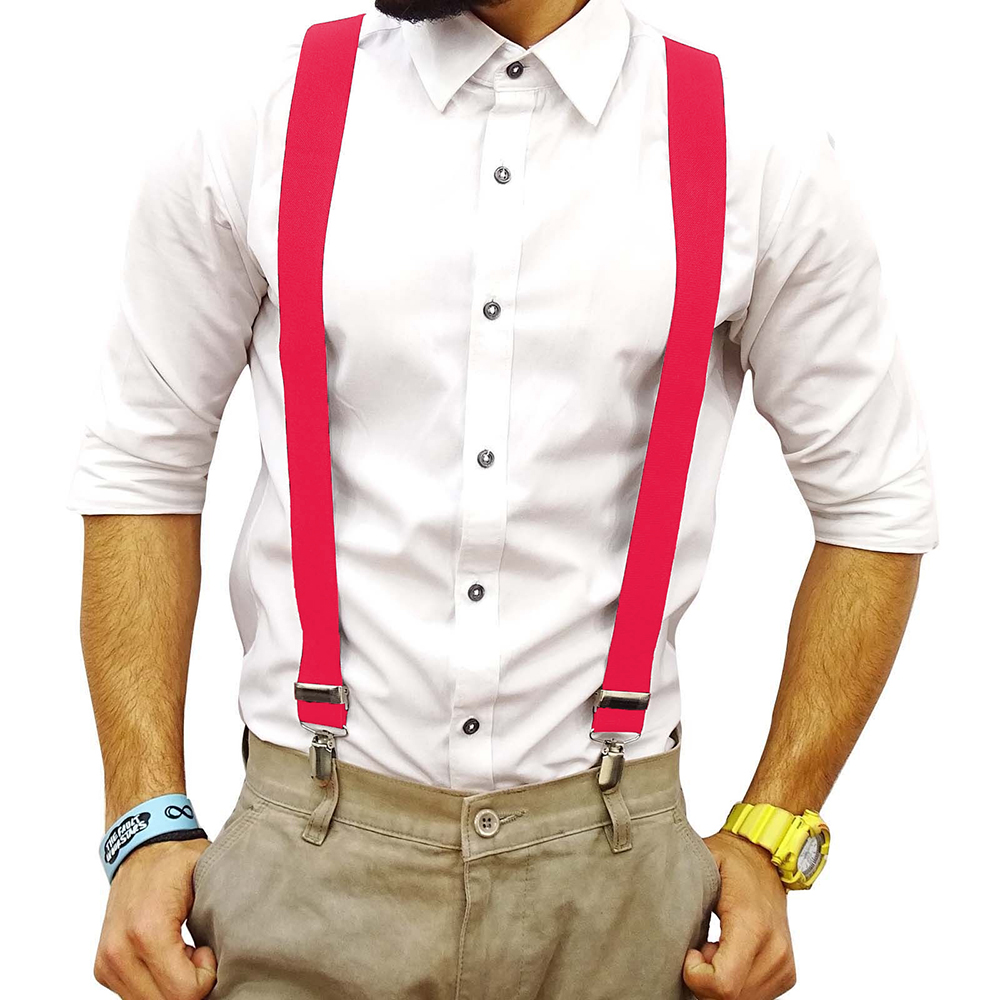 ![]() Product Description: [EXCELLENT MATERIAL] Our mens suspender is made of high quality materials Spandex. Heavy duty Y-back shape design,surprise workmanship,solid hand long. These clip suspenders are comfortable and hold up trousers very well,easy to open clip, enough strength to hold your pants up tightly. Enjoy a good fit with our high quality clasps that grip on securely without unintentional unbuckling. Sturdy and durable. [UNIQUE DESIGN] This suspender has a unique,functional alternative to the classic belt. A pair of clip-on suspenders are a distinctive and versatile way to provide trouser support. With wide elastic suspenders,you can spruce up your formal wear or show off a hip,trendy new way to rock a pair of jeans or shorts. [PERFECT FOR FORMAL & CASUAL EVENTS] Ideal for Daily Wear, Parties, wedding or Fancy Dress etc. Perfect for, dance groups, school functions like band, choir, orchestra and many more special occasions and events. Great for: Trousers, Jeans, Suit, Shorts,any plain button-down shirt and trousers outfit instantly turns to formal attire! Specifications: Spandex, Hand washable fabric Style: Solid Strap design Shortest: 17inch/ 43cm Longest: 31inch/ 80cm Wide: 1inch/ 2.5cm (One size fits most) Include: 1 x Mens Suspender Color: Black/ White/ Grey/ Rose Red Note: 1. Please allow slight 1-3cm difference due to manual measurement and a little color variation for different display setting 2. Size doesn't fit all, please carefully check size chart and select the size based on your real size。 --------------------------------------------------------------------------------------------