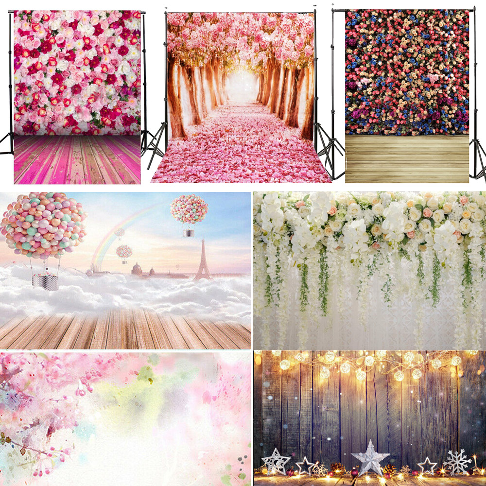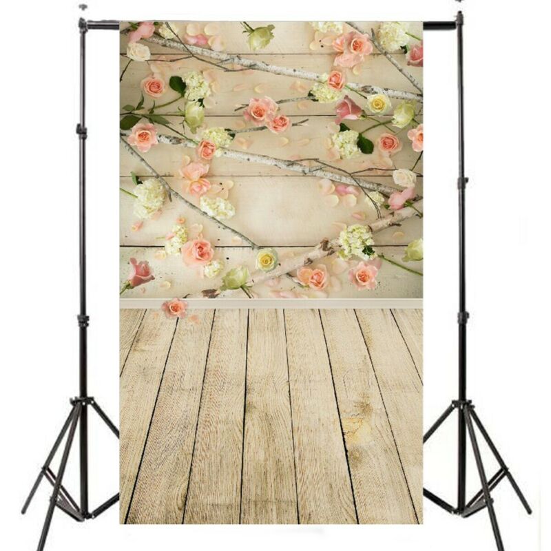 Romantic Flower Wood Photo Vinyl Photography Studio Backdrop Outdoor Screen USA