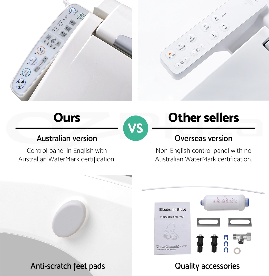 Just as you need water to wash our face, hair, hands, feet and body to keep them clean and healthy, it is also true for our personal areas. And if cleanliness and hygiene are important to you, then you will find our electronic bidet an integral part in ensuring a refreshing lifestyle. Smart bidet is a convenient solution to address your needs. Installing the bidet is as easy as simply removing your original toilet seat and replace with it. Just connect to the water cistern supply with the supplied fittings, and a power source. No plumber needed. And with all the great functions set in a simple control panel, using the bidet is totally hassle-free too. Among the many great features are a variety of soothing washes for the posterior, massage mode, adjustments for wash position; water spray intensity; air dryer, water and seat temperatures; water filtering and a built-in automatic body sensor. Certified by SAA, the electronic bidet is designed for safe and reliable use in all Australian homes.
