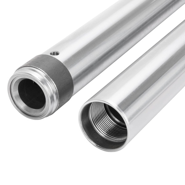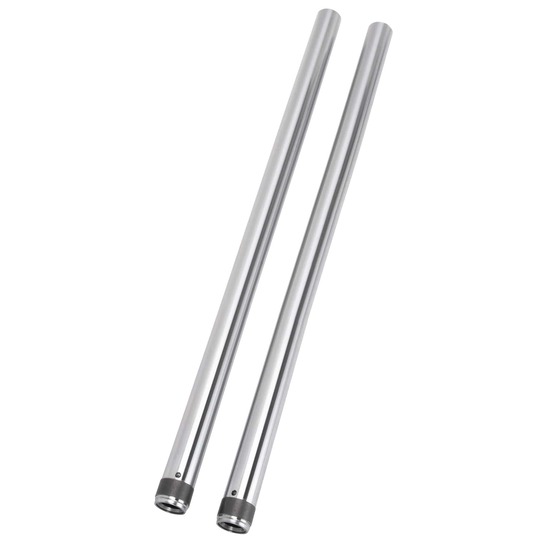 These fork tubes are 39mm in diameter and measure 27” long, which is +2” over versus the stock fork tube length of 25" as found on most '04-up Sportsters. Hard Chrome plated finish.