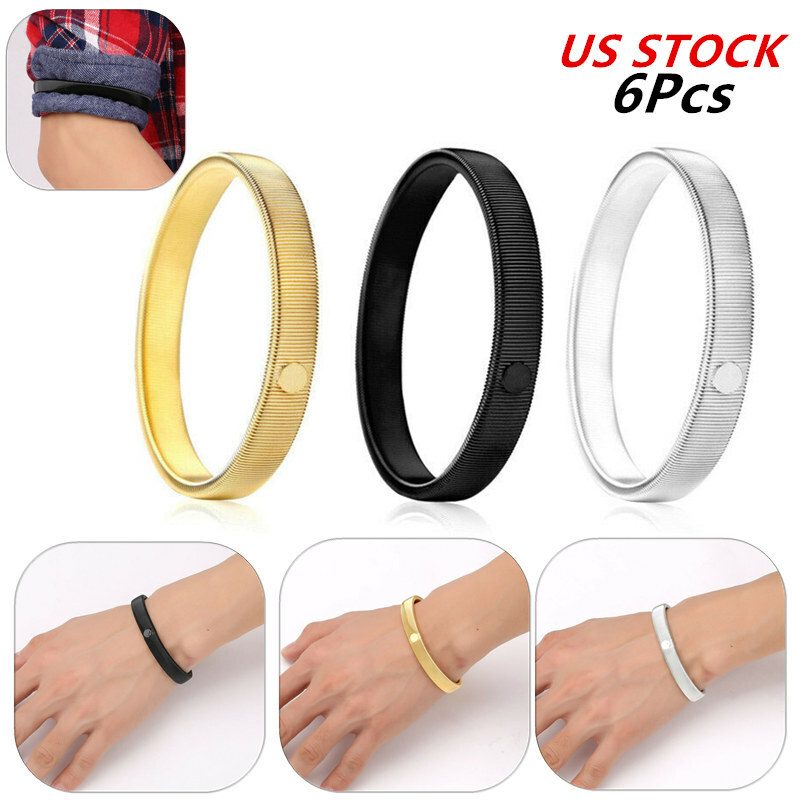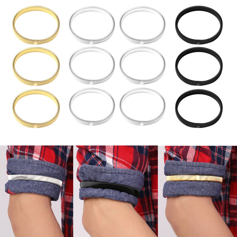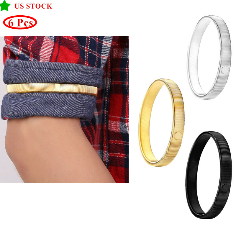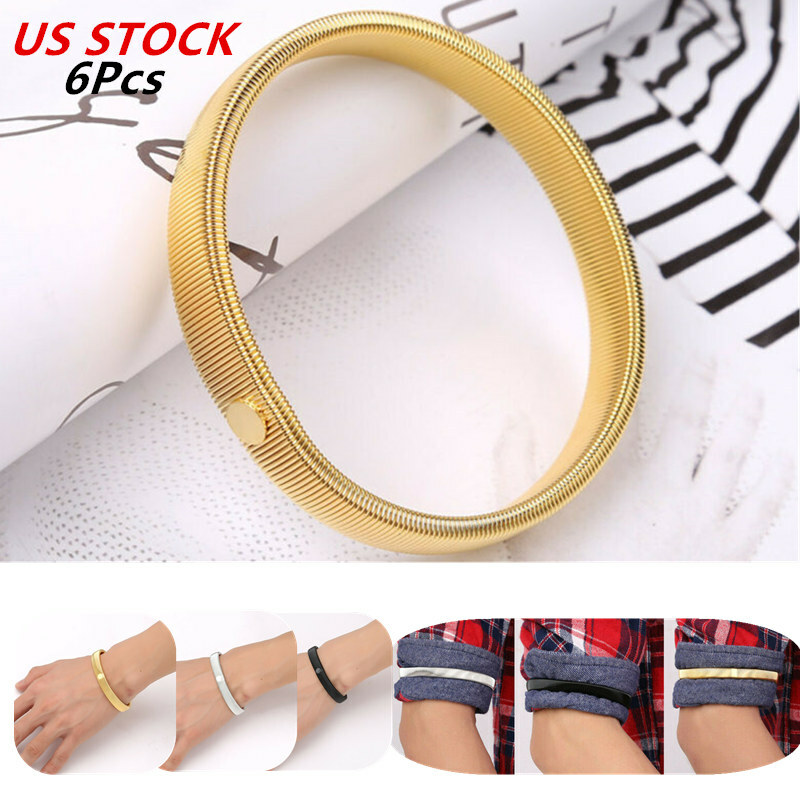 6Pcs Anti-Slip Shirt Sleeve Holders Stretchy Steel Wire Metal Armbands.