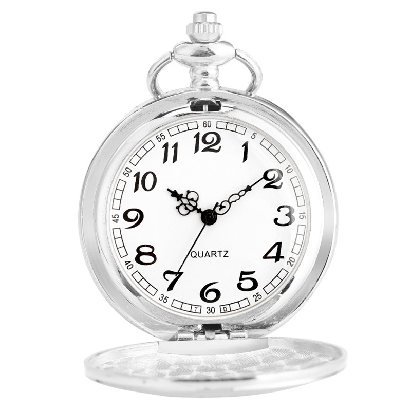 Antique Mens Silver Smooth Quartz Pocket Watch Full Hunter Neckalce Chain Gifts