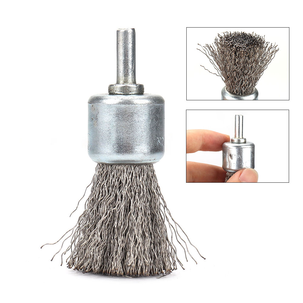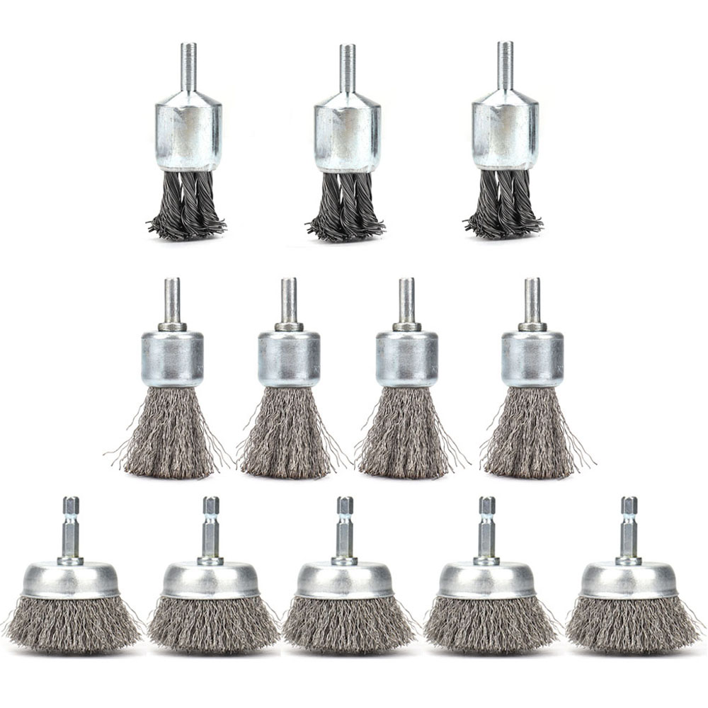 The package contains 12Pcs wire brush: 3PCS 1 inch round handle knotted stainless steel wire brush, 4PCS 1 inch round handle crimped stainless steel wire brush, 5PCS 2 inch hexagon handle bowl type stainless steel wire brush.
