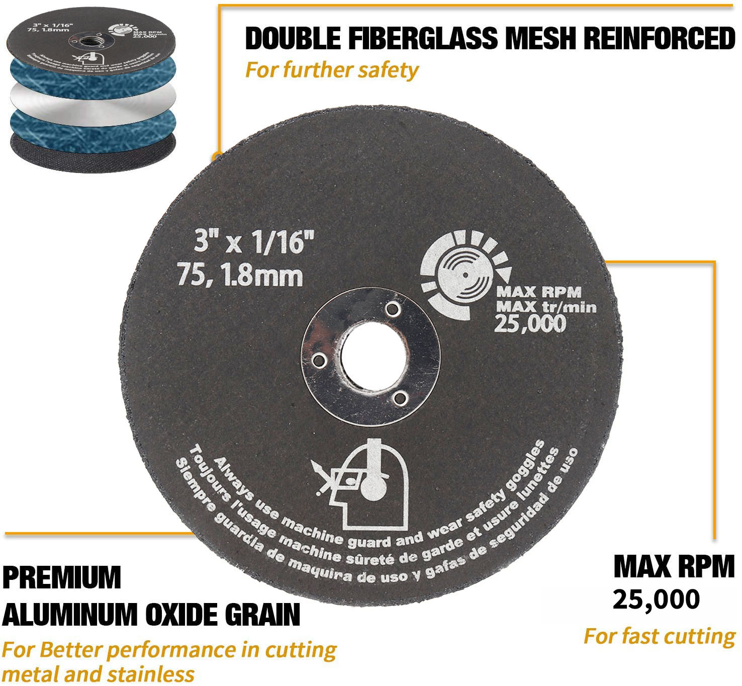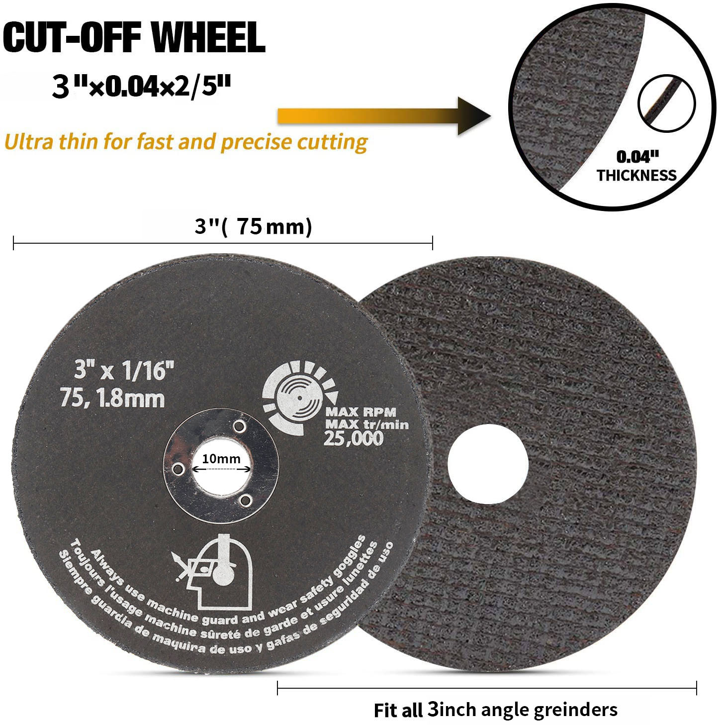 Used with angle grinder or other rotary power tool, specially used for cutting iron, stainless steel and metal materials.