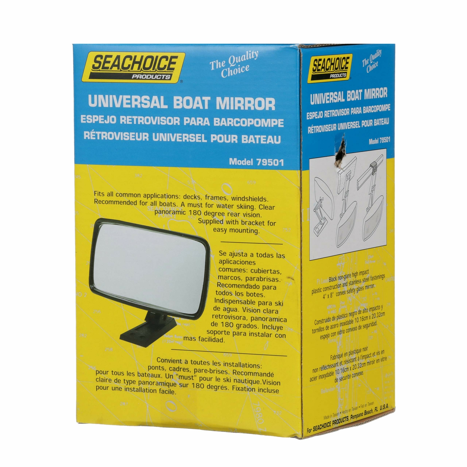 The Seachoice Universal Boat Mirror features a 360-degree swivel convex back-coated aluminized glass mirror is a must for water skiing. It offers a clear panoramic 180 degree rear view and easily adjusts to any position. The supplied aluminum bracket allows for a variety of mounting applications, including decks, frames, and windshields. Seachoice is committed to delivering quality marine accessories and OEM replacement parts to satisfy fishing, boating and watersports enthusiasts worldwide. Seachoice is run for and by boaters, offering a wide-ranging product line while remaining affordable.