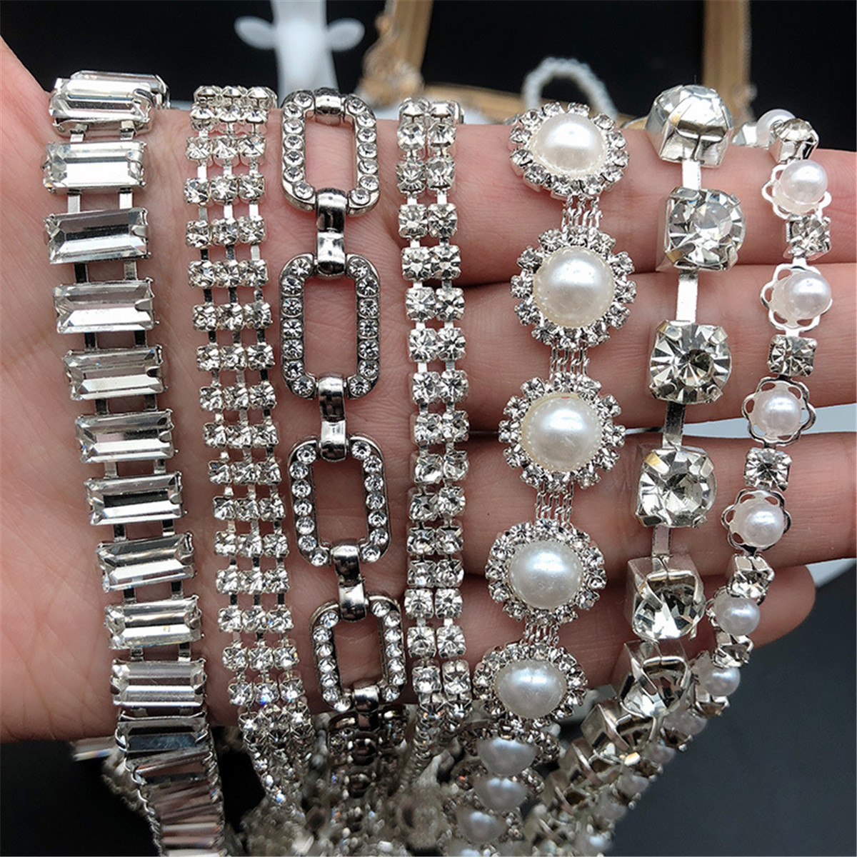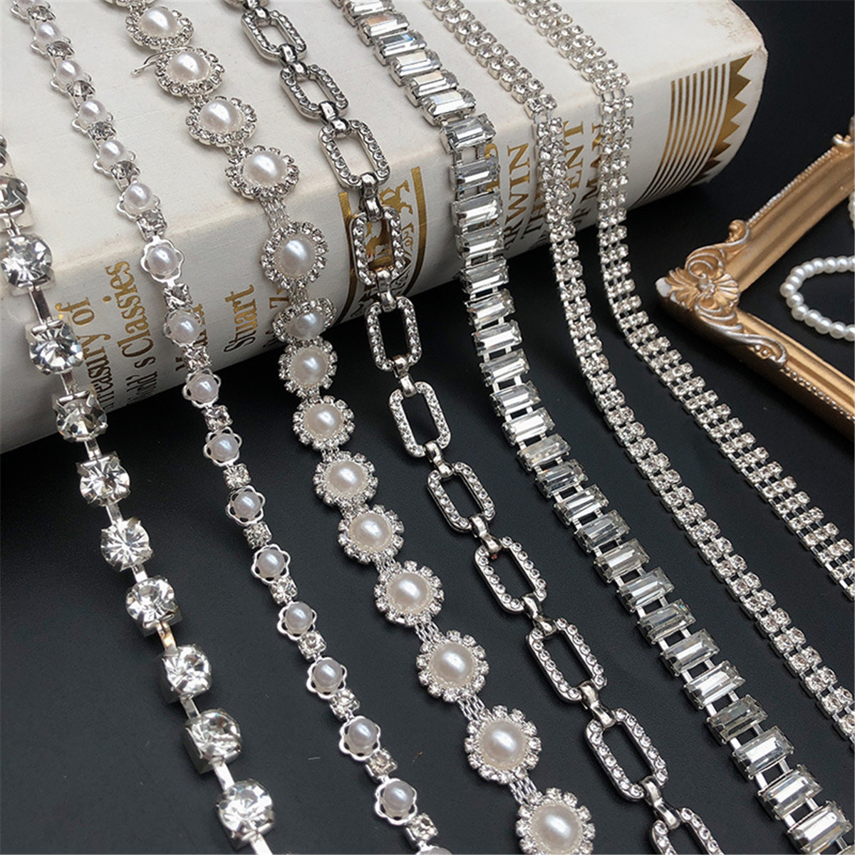 1 Yard Pearl Sun Flower Shiny Dress Decoration Fancy Claw Chain