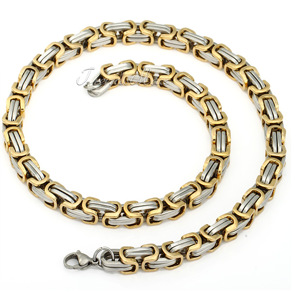 8mm 20/22" Gold Silver Tone Stainless Steel Byzantine Box Chain Necklace Mens