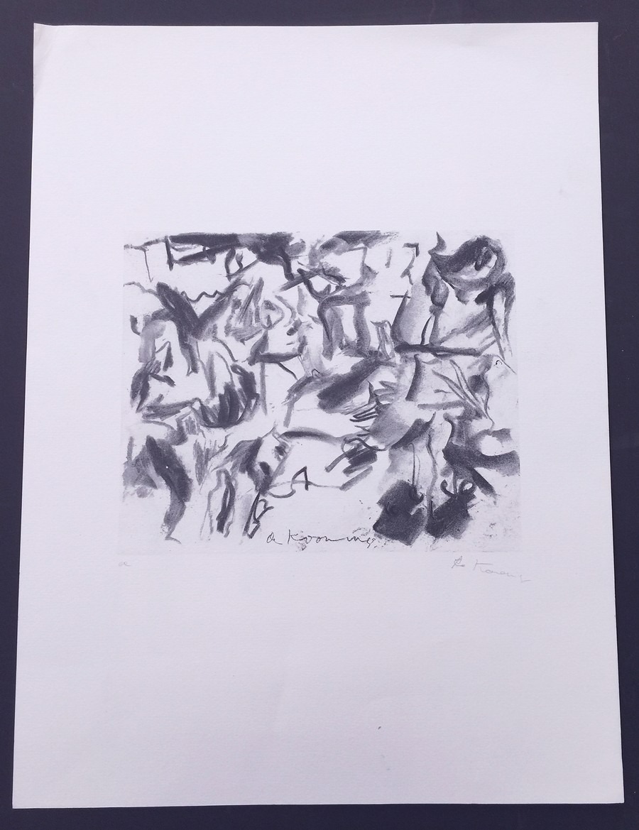 Willem de Kooning, original untitled abstract lithograph on heavy paper, signed in the plate and also signed and marked "ea" (French for Artist's Proof) in pencil beneath the image, 14 1/2 by 19 1/4 inches including margins, in near excellent condition as the upper left corner is slightly creased. De Kooning is one of the preeminent Abstract Expressionist artists from the New York School. This lithograph is a nice example of his work.
