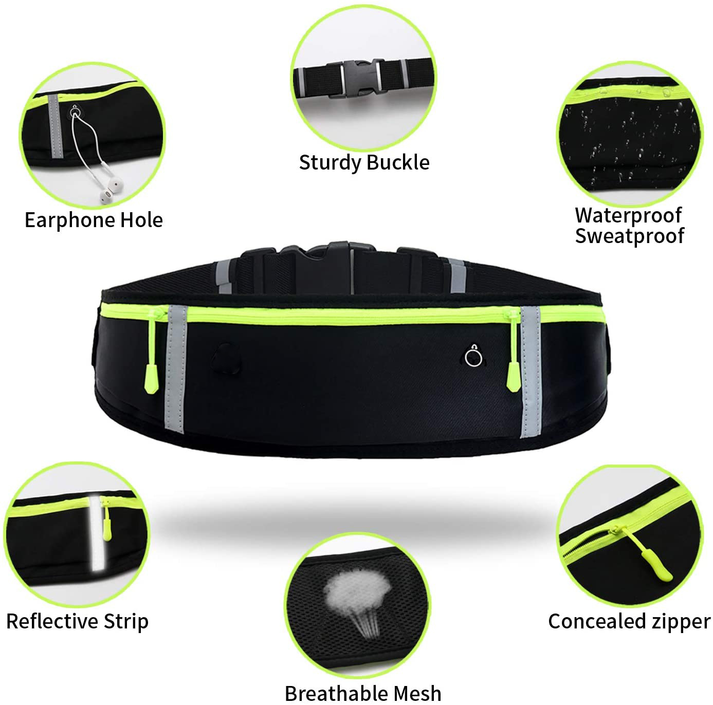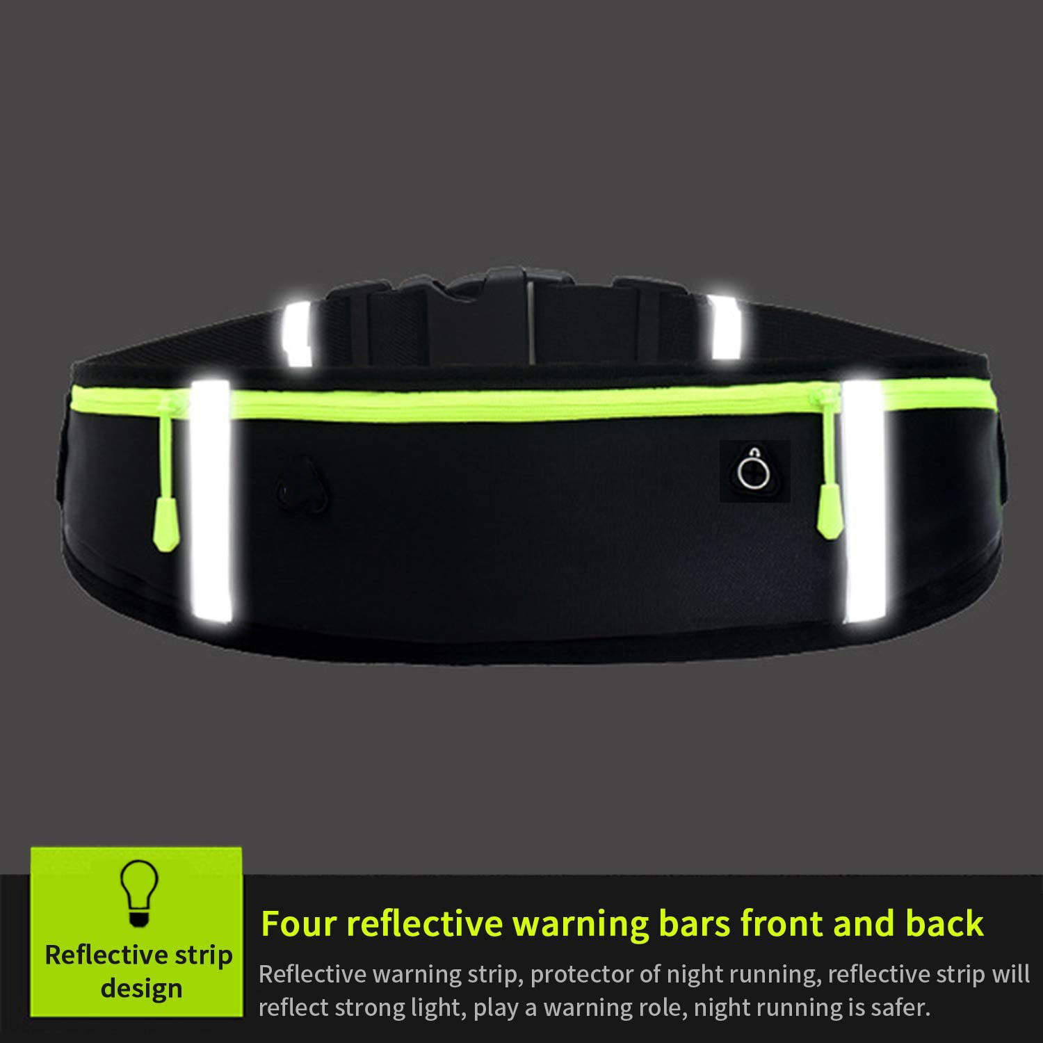 - Reflective Strip - The run belt equipped with 4 reflective strips front and back, which makes you noticeable at night and keeps your safety for evening running.