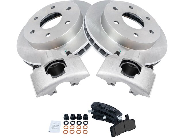 Package Contents: Brake Pad Contact Point Grease; Brake Pad Hardware; (1) Front Ceramic Brake Pad Set; (2) Front Replacement Brake Rotors; (2) Front Brake Calipers with Hardware