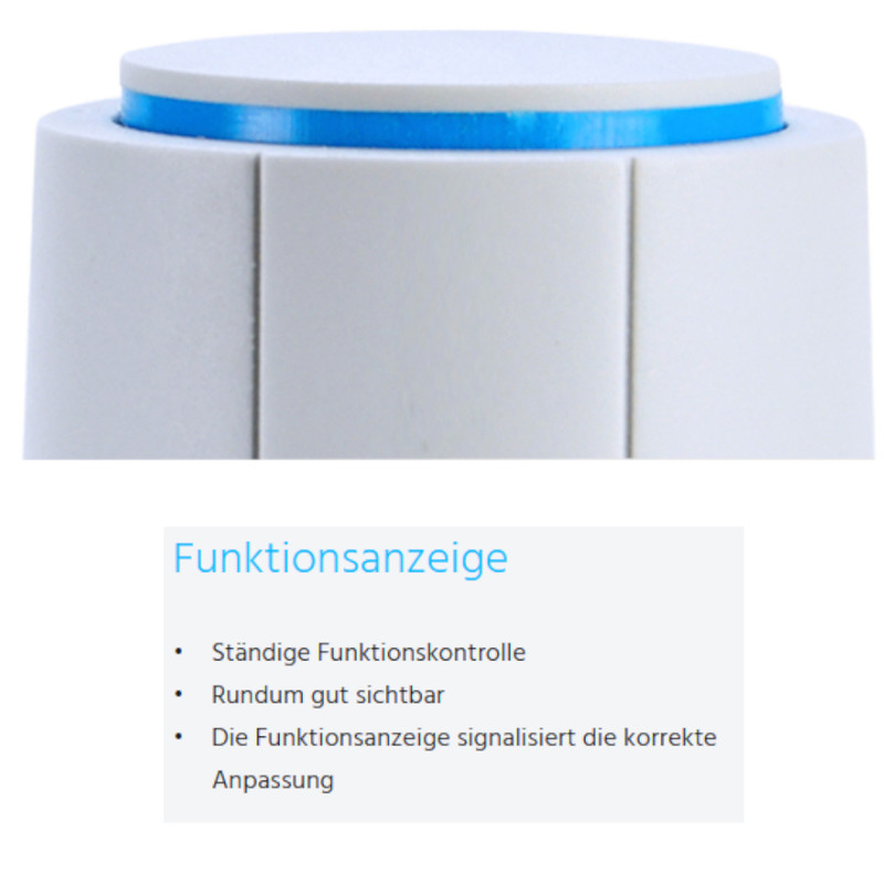 L'azionamento termico da 230 V qui offerto è dotato di indicatore di corsa, è protetto dagli spruzzi d'acqua ed è già dotato di cavo di collegamento.