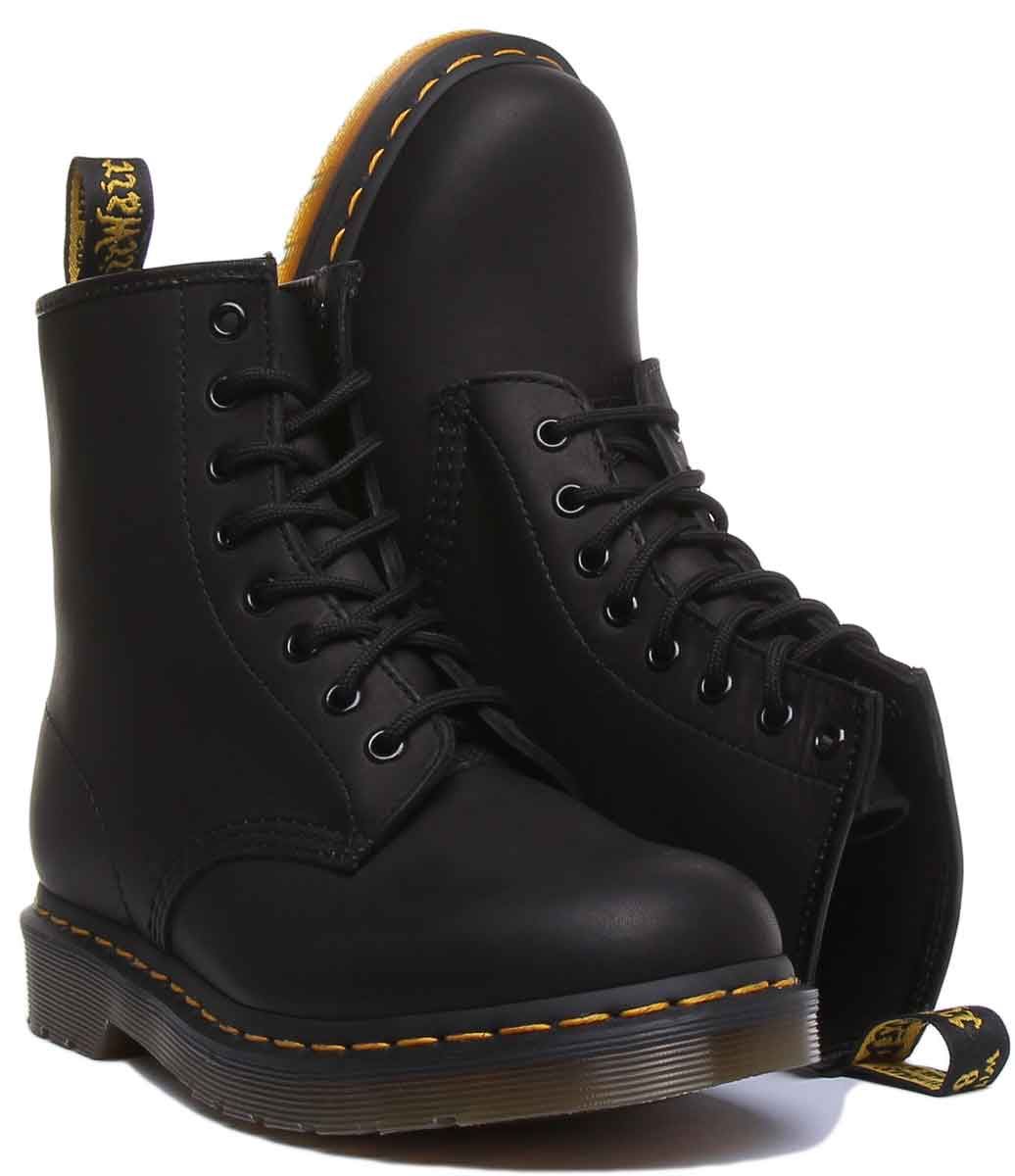 Dr Martens 1460 Greasy Unisex 8 Eyelet Lace Up Leather Boot In Black