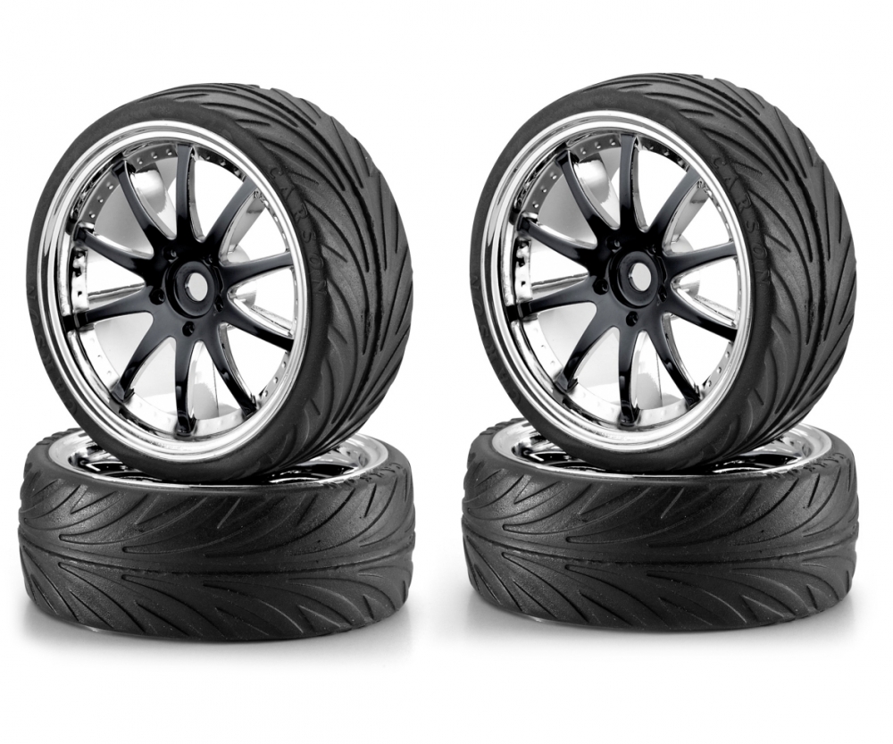 Art.Nr: 500900080 Artikelbezeichnung: 1:10 Big Wheel-Set 02 10 Speichen schwarz /chrom (4)Dieses Räder Set ist für alle Modelle im Maßstab 1:10 mit einem Felgenmitnehmer von 12 mm geeignet. Die spezielle Gummimischung der Reifen verleiht ihrem Fahrzeug einen guten Gripp und dadurch ein hervorragendes Fahrverhalten. Der besondere Style der Felge macht ihr Fahrzeug zusätzlich zu einem echten Blickfang.
