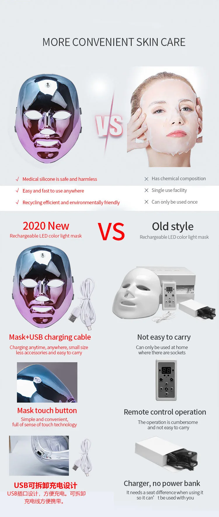 2021 Home Use Ledmask PDT Photon PDT Light Facial 7 Colors Facial Mask Skin Care