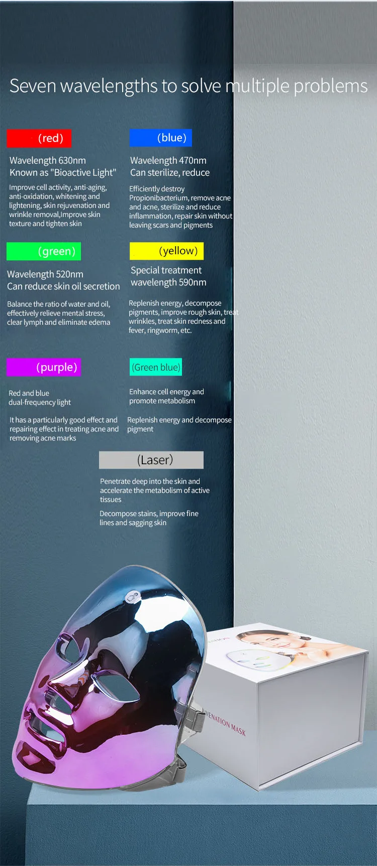Product Description 2021 Ledmask PDT Photon PDT Light Facial Skin Beauty Therapy 7 Colors Shield Facial Mask Facemask LED Face Mask Face Skin Care