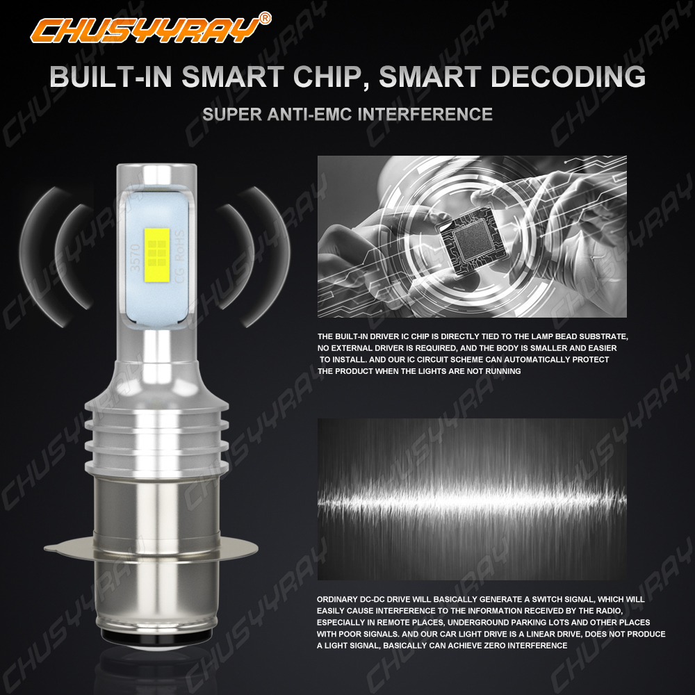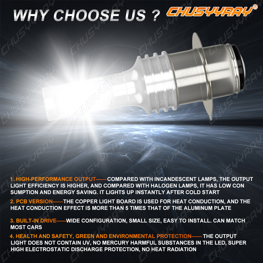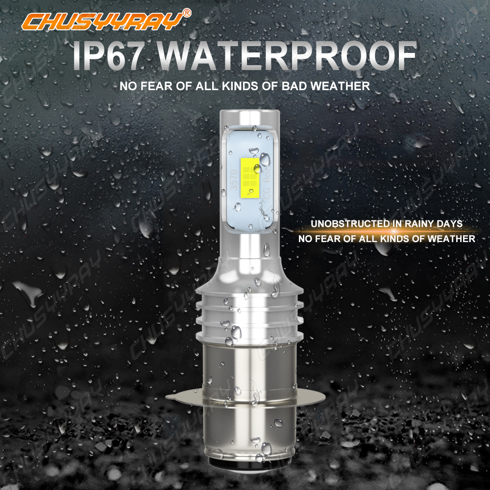 Pair Super Bright White LED Headlight Bulbs with CSP Chips to replace your old bulbs. Package Including: 2pcs P15D/H6M LED Bulbs Warranty: