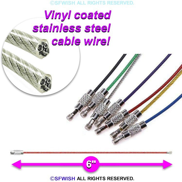 This listing is for seven(7) vinyl coated stainless steel cable wire carabiner/key holders. These wire carabiner/key holders are new and comes as shown. Each cables are about 6 inches long and 1.5mm thick. Actual colors you will receive may be different than pictured!