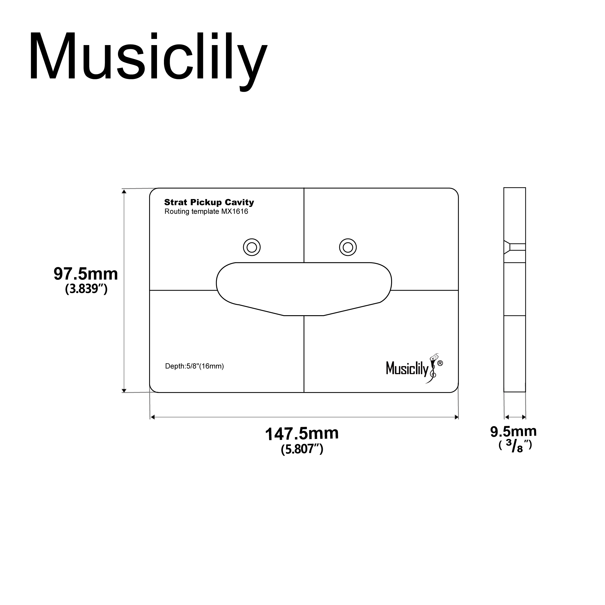 This template will help you to create a cavity for ST-style single coil pickup on a body. Accurate correct size and thickness, cutted by CNC machine, so you will not need to puzzle over cavity dimensions.