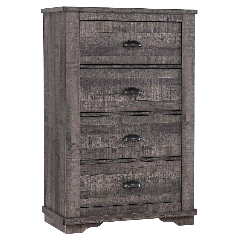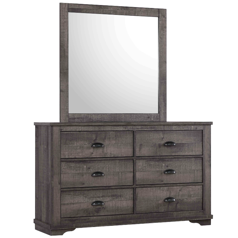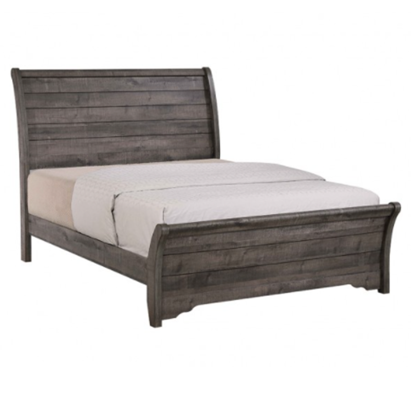 This beautiful Coral Sleigh 5 Pc. Bedroom Suite is inspired by farmhouse living style with its gray finish and black drawer pulls, offering a stunning rustic look. Simple in appearance but full of character, this sturdy sleigh bedroom suite gives off a warm cozy vibe that you and your family can enjoy for years to come. Comes with 8-storage drawers. Dresser and Nightstand Come Assembled.