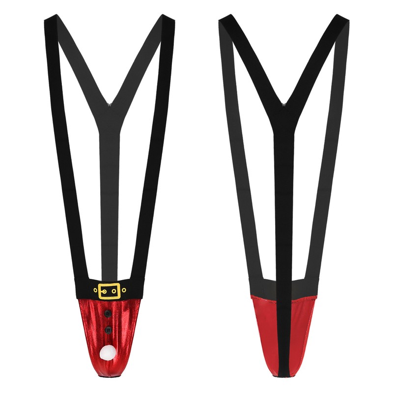Männer Weihnachten Singlet Ausschnitt Samt Body Federbesatz Ausbuchtung Pouch Open Butt Overalls mit Hut.