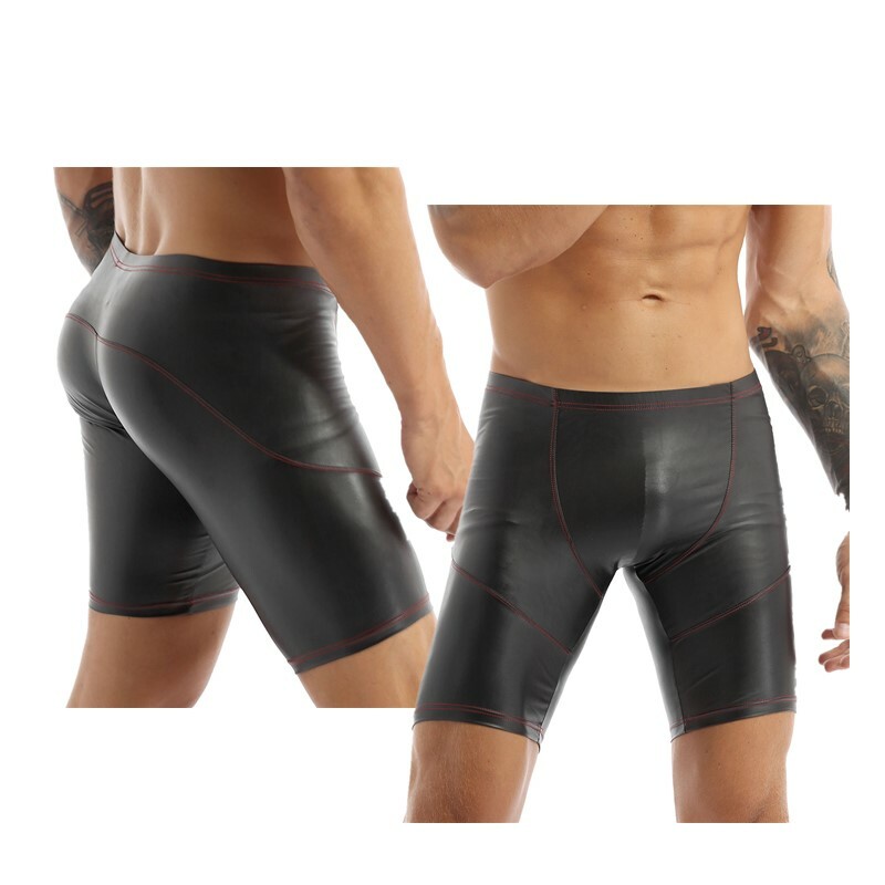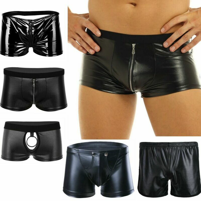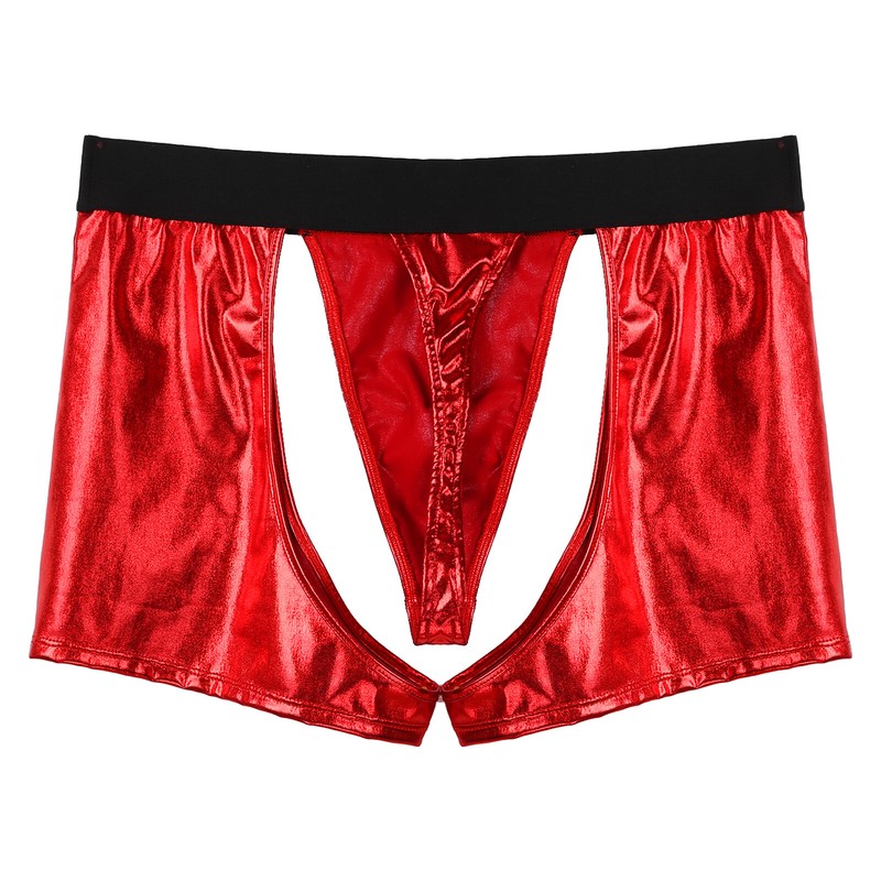 Kunstleder Cutout Boxershorts Knopf Kunstpelz Ball Decor Bulge Pouch Unterhose für Männer.