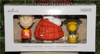 Hallmark - PEANUTS - CHARLIE BROWN SNOOPY & WOODSTOCK 3 pc Ornament SET *NEW!