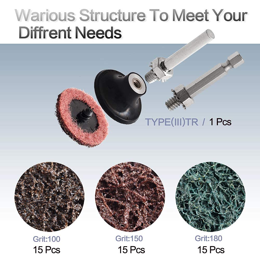 ◆ From Prep To Polish: The ABN 1/2/3 inch roloc rotary sanding wheel disc pad adapter holder with 1/4" mandrel shaft shank – surface prep & finishing die grinder accessories provides firm support when using roloc and other bristle discs to complete sanding or conditioning work.