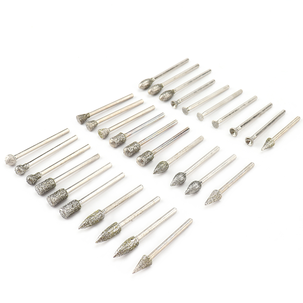 Grit 60 Diamond Rotary Grinding set, rougher surface which are quicker than the larger grit burrs when Sanding, Polishing and Engraving.High working efficiency, perfect grinding effect. Convenient to engrave, simple to use, safe and reliable.