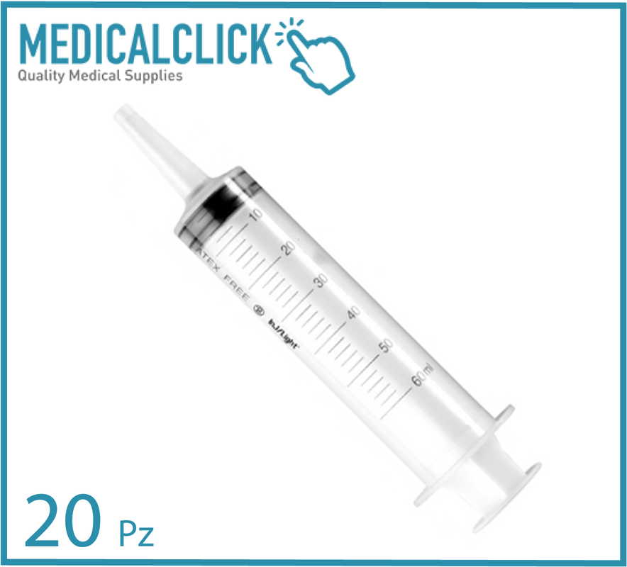 INJ/LIGHT SIRINGA MONOUSO SENZA AGO CON CONO CATETERE 60 ML. CONFEZIONE DA 20 PEZZI