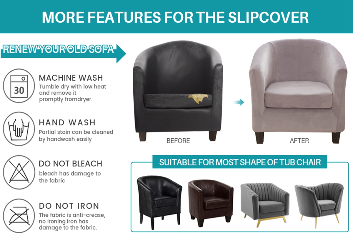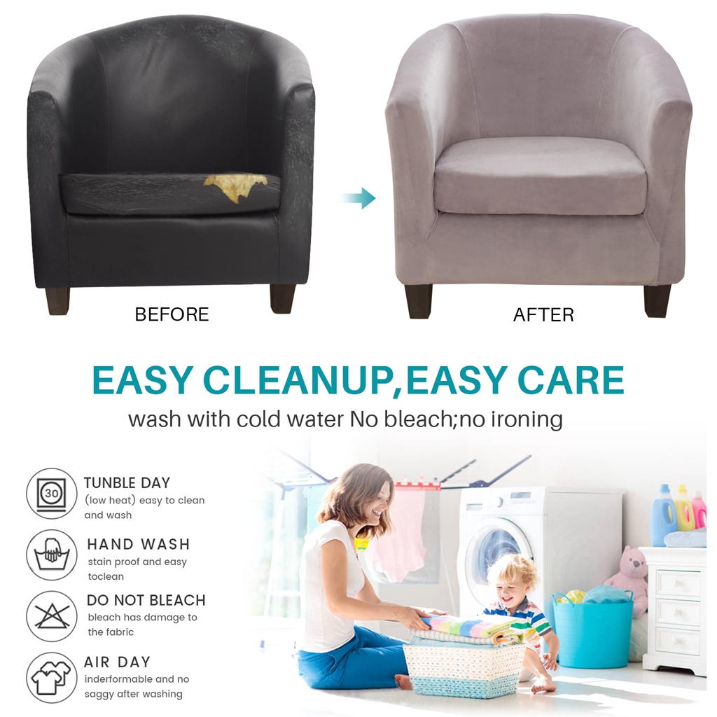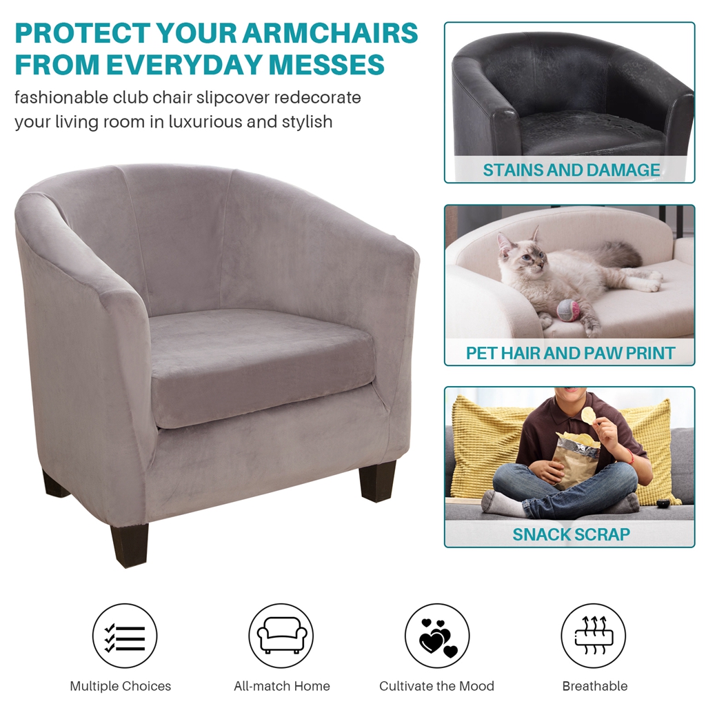 Features: Upgrade & Luxurious & High Stretch 2 Piece Club Chair Cover: Our armchair slipcovers is not only crafted from high advanced non-slip, thick, breathable, soft, and comfortable velvet material, but aslo super elasticity, elegant, wrinkle-resistant and against tear polyester fabric. Whether your club chair slipcover is brand-new or decades old, removable chair covers washable will help to keep it looking fresh at all times. No reupholstering necessary!
