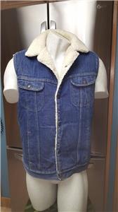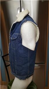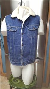 Men's Vintage 70s Roebucks Western Wear Sears 40 Denim Jean Sherpa Snap Vest USA Size 40-T (Tall?)