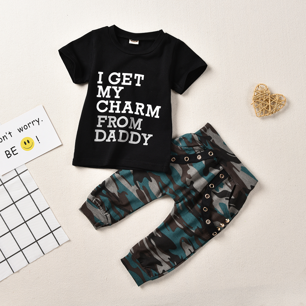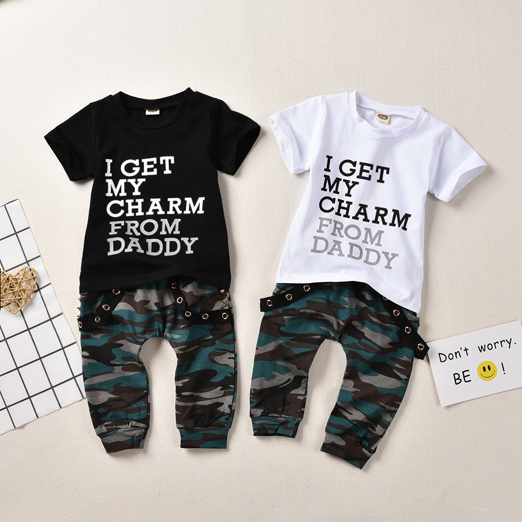 DescriptionFashion Camo Baby Boys 2-Piece Outfits !! High quality and Brand new 100% Main Color: AS The Picture New in Fashion Material:Cotton Blend