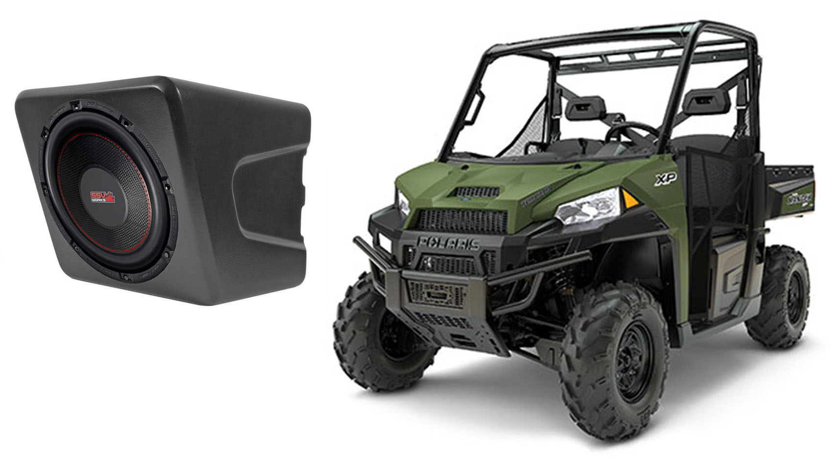 SSV Works Polaris Ranger XP1000 2018+ custom molded sub enclosure is designed for a 10" subwoofer and mounts underneath the front passenger seat. NO CUTTING REQUIRED, the box simply screws in and provides the proper airspace needed for a 10" woofer. They are 100% fiberglass for the best sound quality and bass response. They are finished in a black texture coat to match Polaris textures and can be custom painted to match your color scheme. - Includes mounting hardware and step-by-step installation instructions.