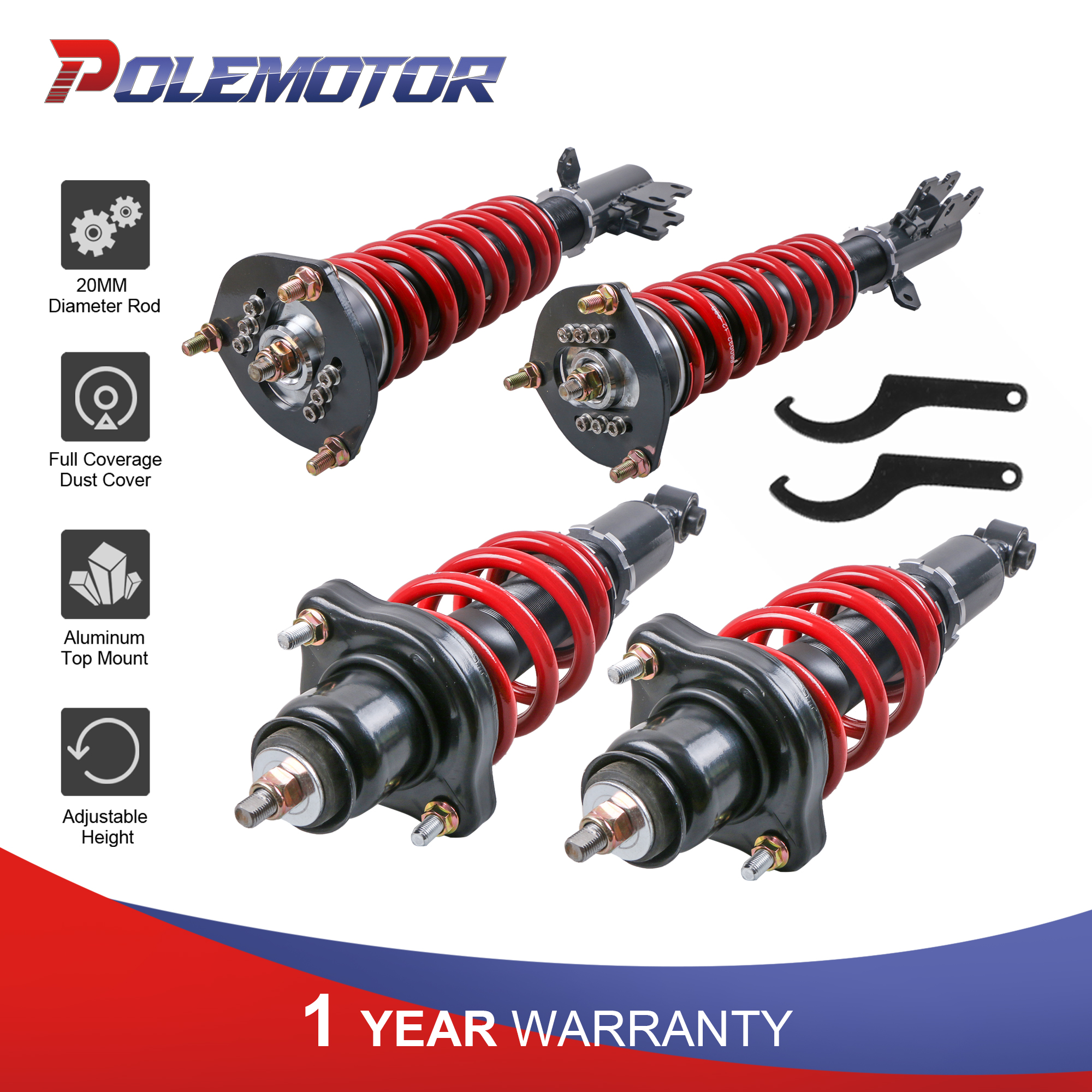 Quantity: 2 pieces front + 2 pieces rear shock absorbers, Spanner as shown in the picture