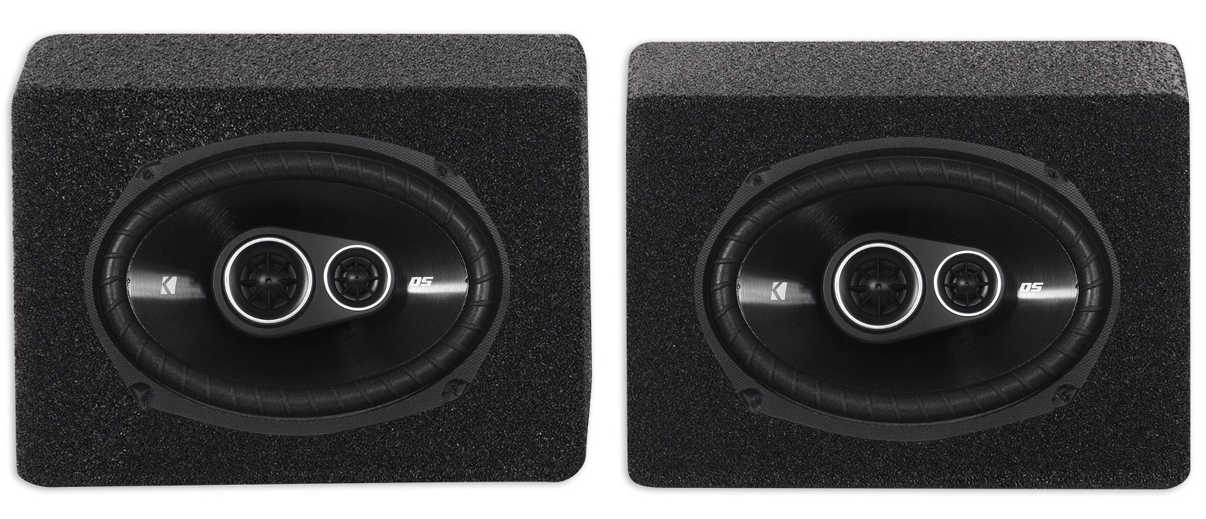Package: Pair of Kicker 43DSC69304 6"x9" 360 Watt 3-Way Speakers With 4-Ohm Impedance + Pair of Rockville RS6x9BL 6x9" Sealed Car Speaker Enclosures with Bedliner Finish