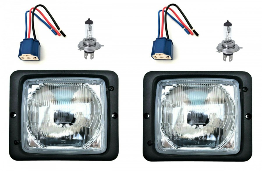 Zwei Scheinwerfer + Lampenfassungen + Glühbirnen H4 12V