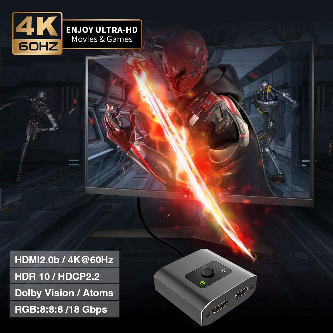- Support 4Kx2K 60Hz - Most high frame rate movies and games are running at 60fps. the HDMI switch delivers HDMI 2.0, so you can enjoy full 4K 3D resolution with higher frame rate 2D content (up to 60fps).
