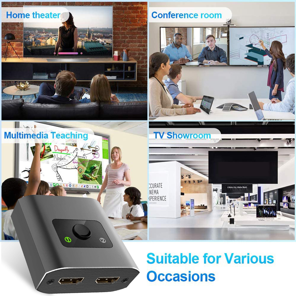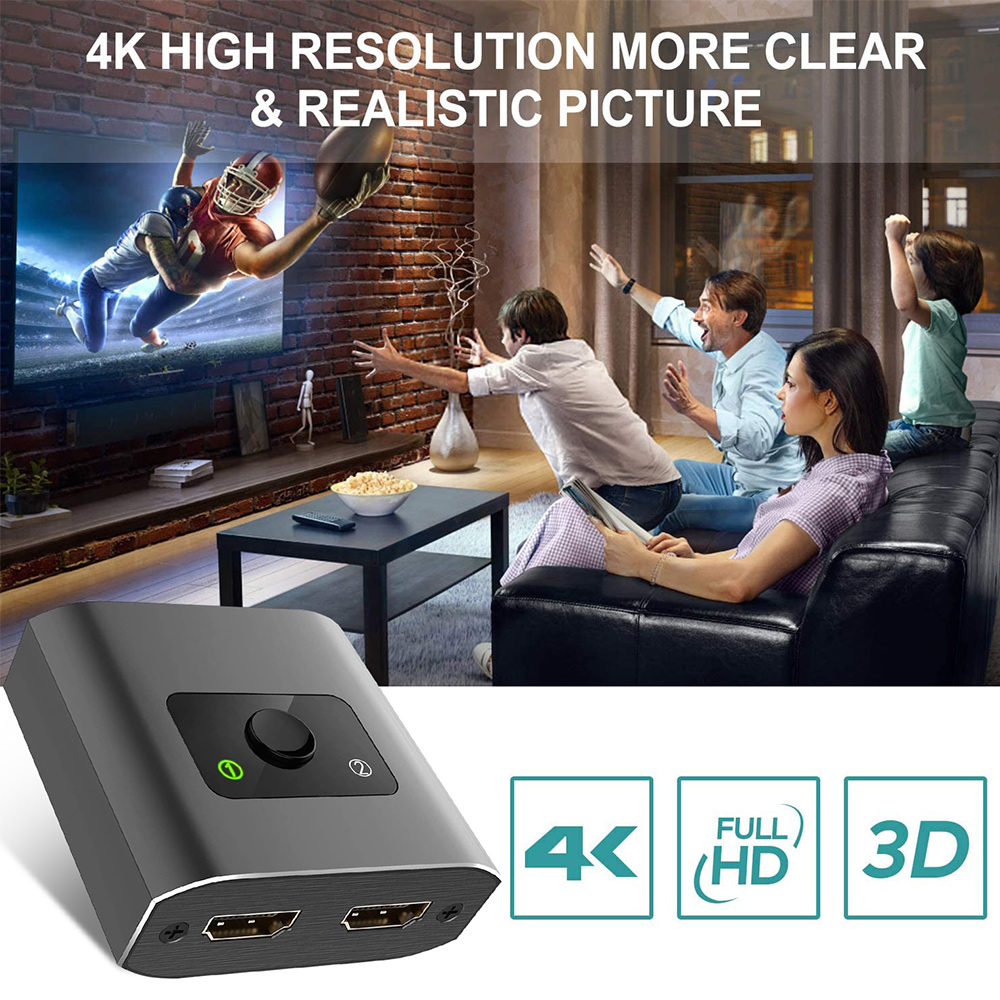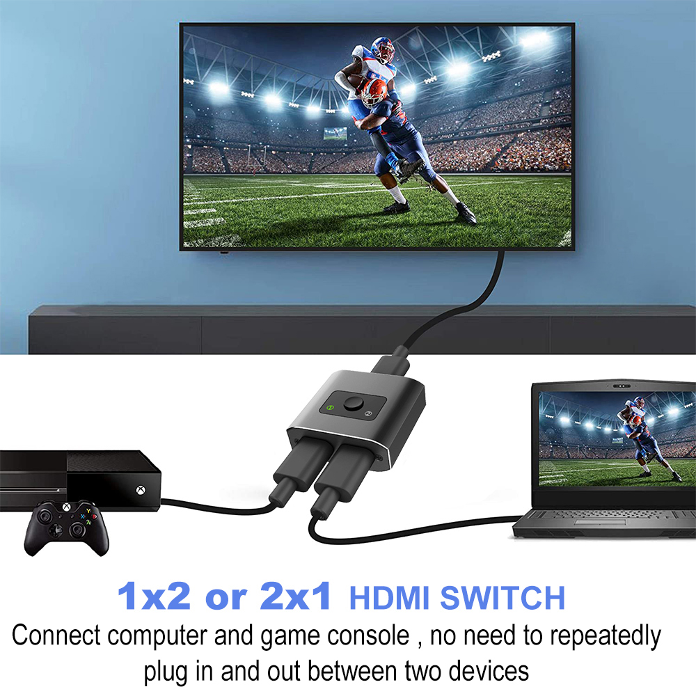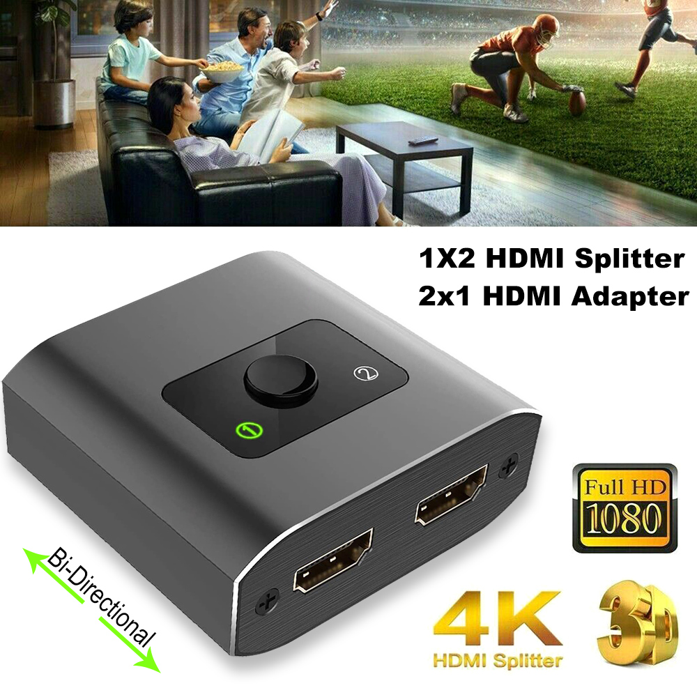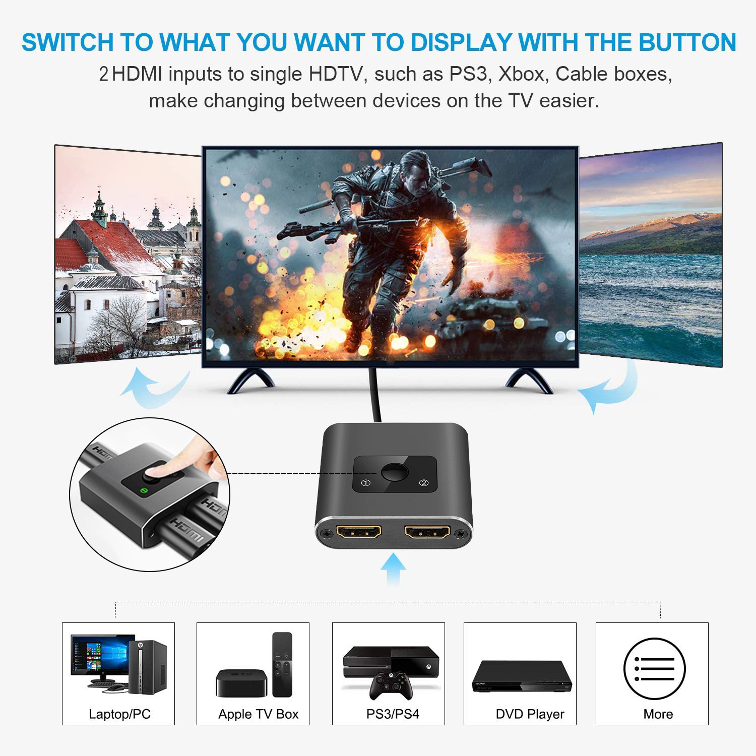 - 1x2 or 2x1 HDMI SWITCH - Modern design, HDMI bi-directional splitter help you connect two HDMI sources to one HDMI display, or connect one HDMI source to toggle between two displays (two screens CANNOT display simultaneously).
